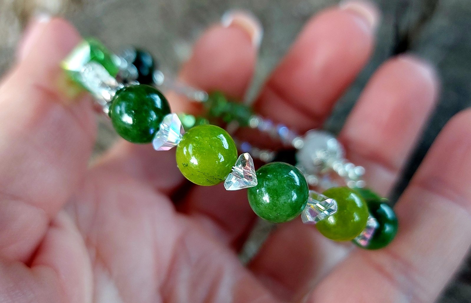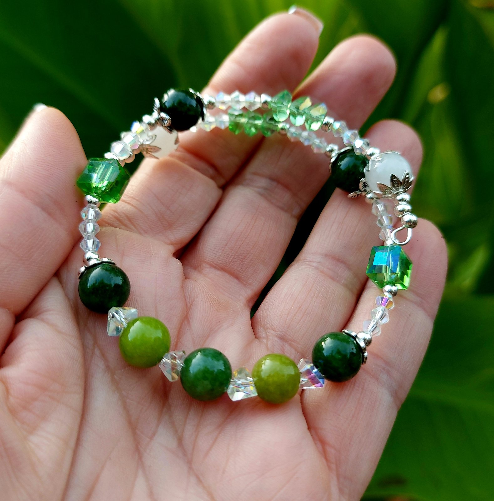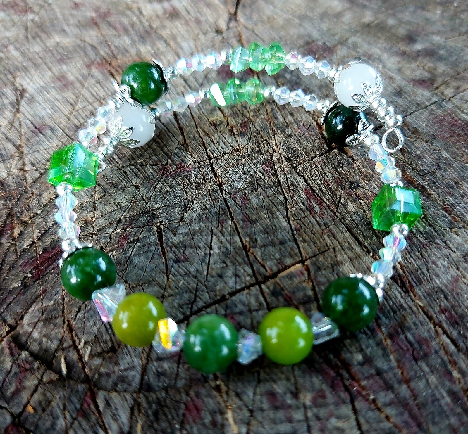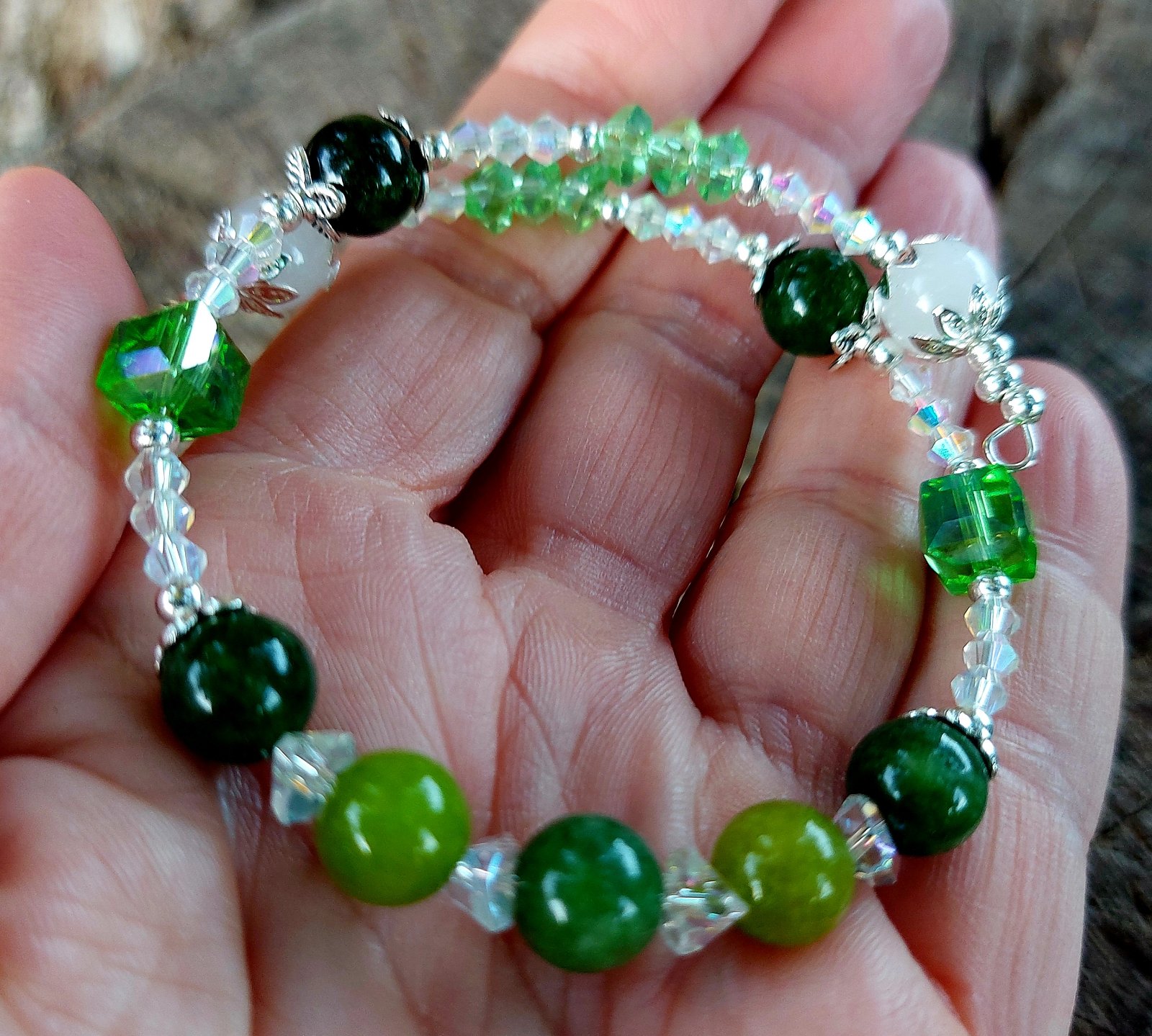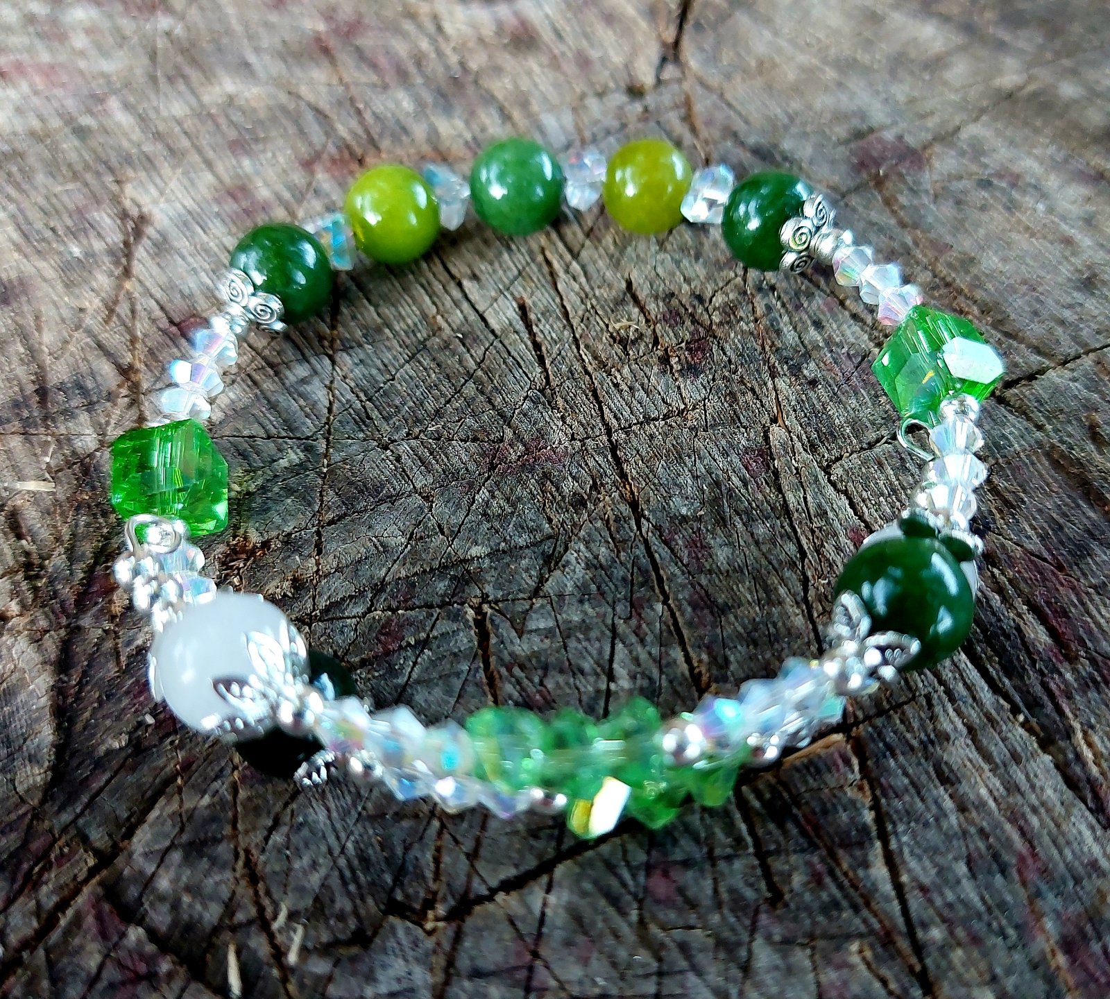 Keď sa spojí sila Peridotu (Olivínu), čistota Krištáľu a lesk rakúskych krištáľov, vznikne náramok, ktorý doslova žiarí pozitívnou energiou!
