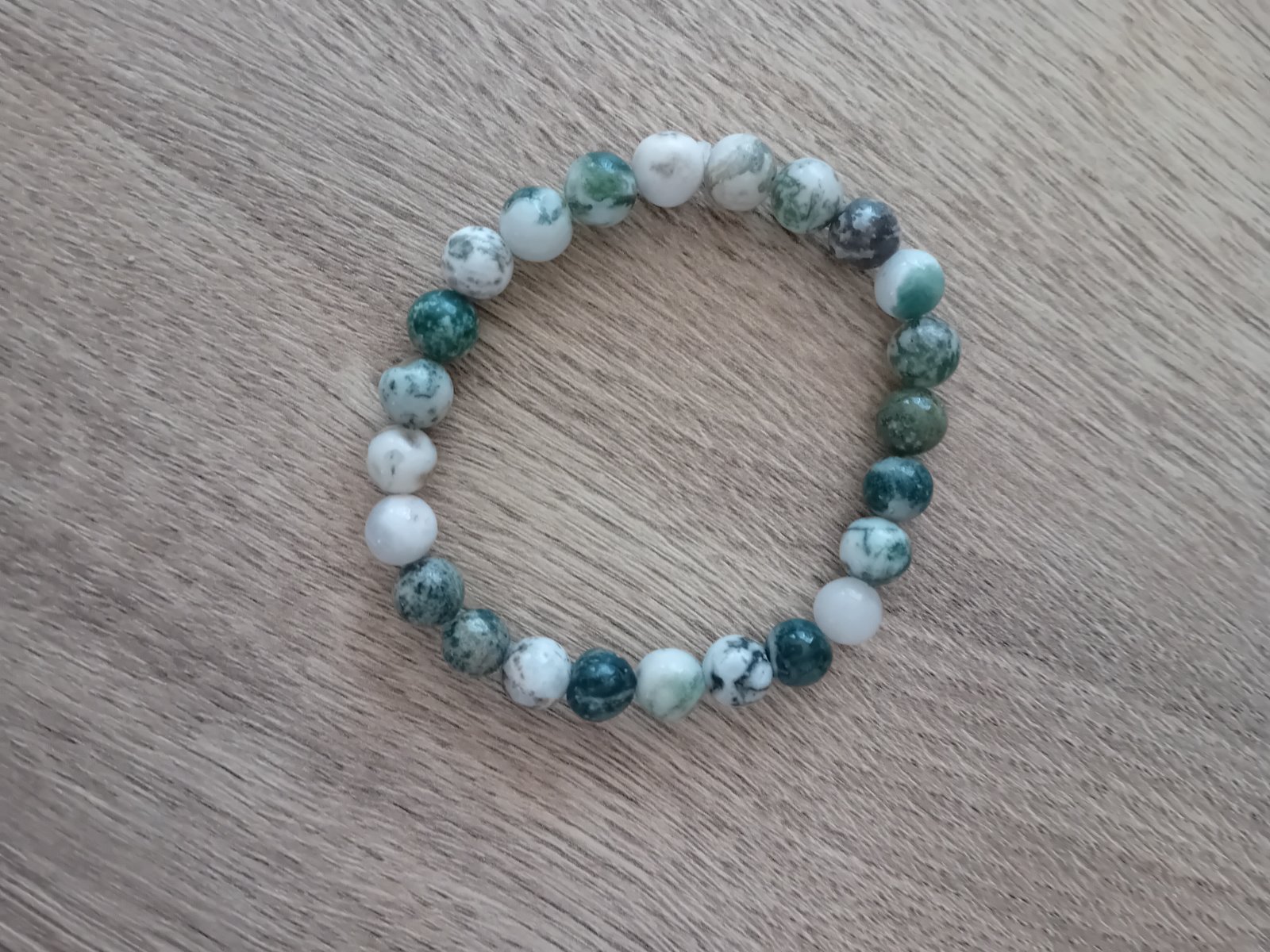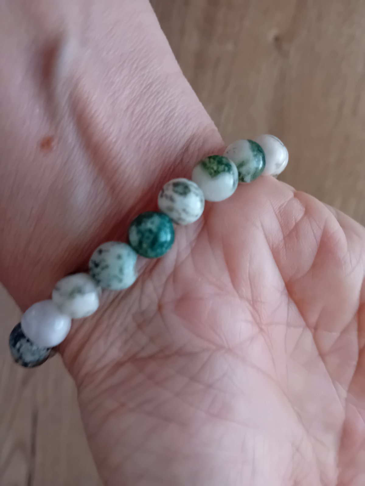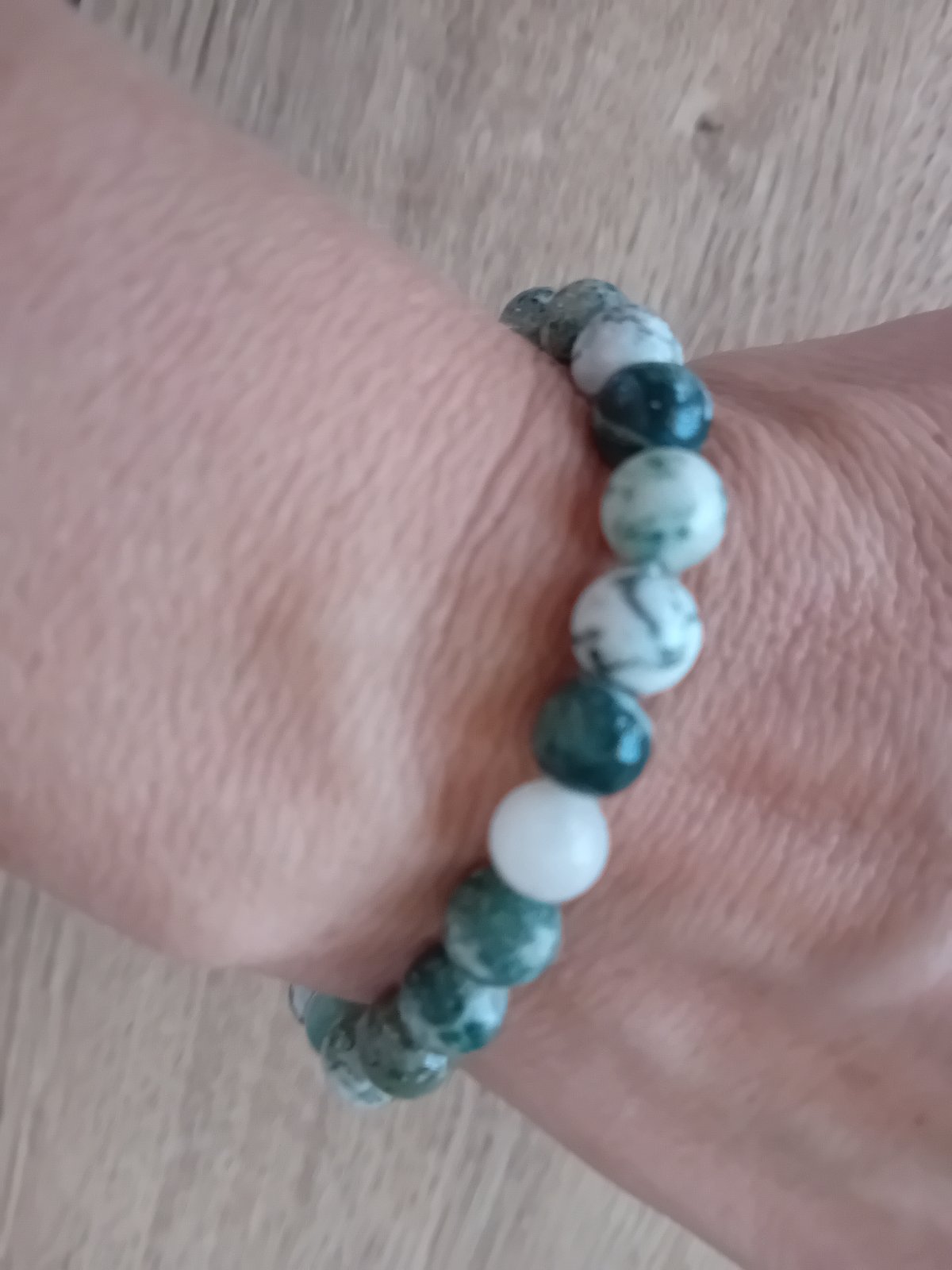 Vintage náramok z achátu machového, kt. podporuje emočnú rovnováhu a duchovný rast. Energia kamene zvyšuje sebavedomie a rozvíja silu a schopnosť vychádzať s ostatnými. Podporuje komunikáciu a sebavyjadrovanie. Veľkosť korálok 8 mm.
