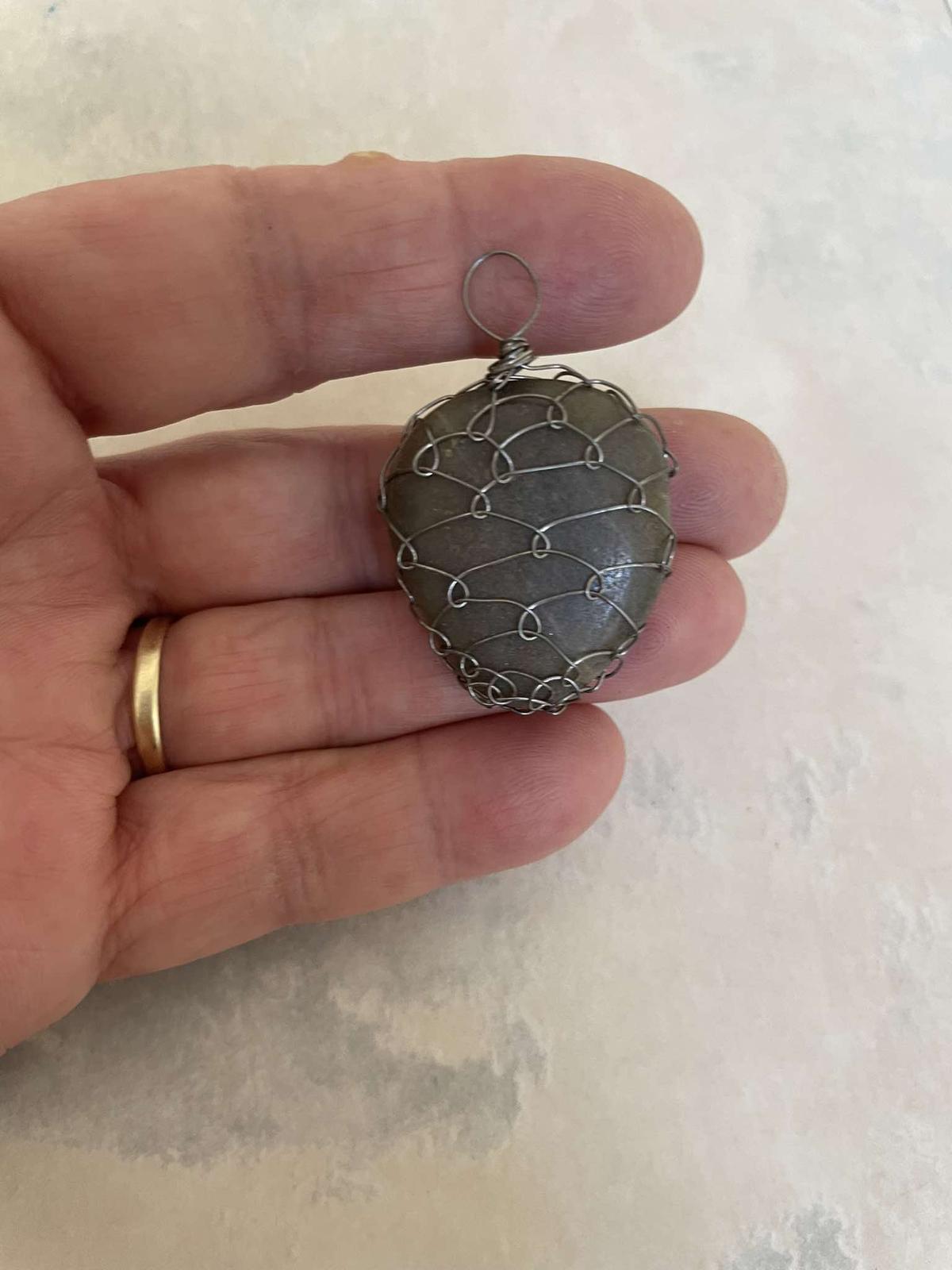 naturálny prívesok,vhodný na hrubšiu retiazku,alebo naturálnu jutovú šnúrku,povraz,alebo na koženú,obalený drátikom