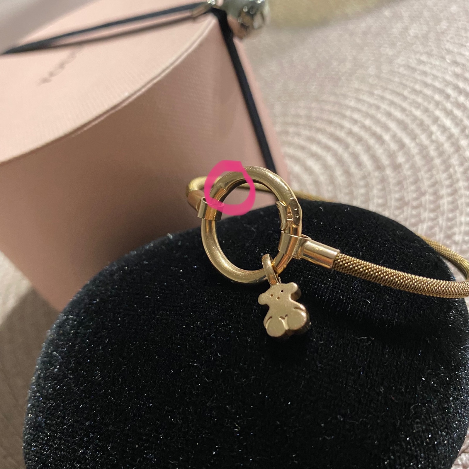 🧸 Predám náramok zn. Tous s príveskom macka Tous. Otvára sa cez krúžok (mierne ohnutý - viď posledné foto), krúžok sa dá otáčať, ohnutá časť sa dá teda pekne schovať a pri nosení nie je vidieť. Náramok je vyrobený z kvalitného striebra s najvyššou rýdzosťou 925/1000 a je pokryté vrstvou 18-karátového ružového zlata.
