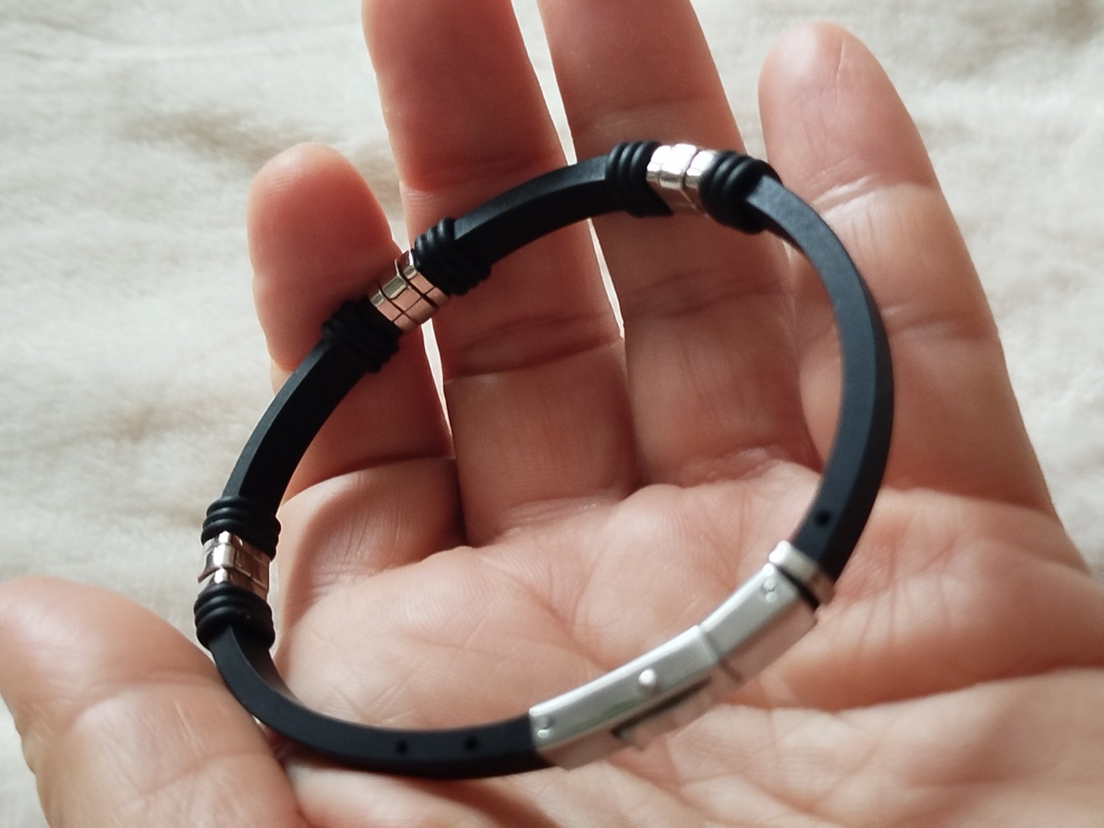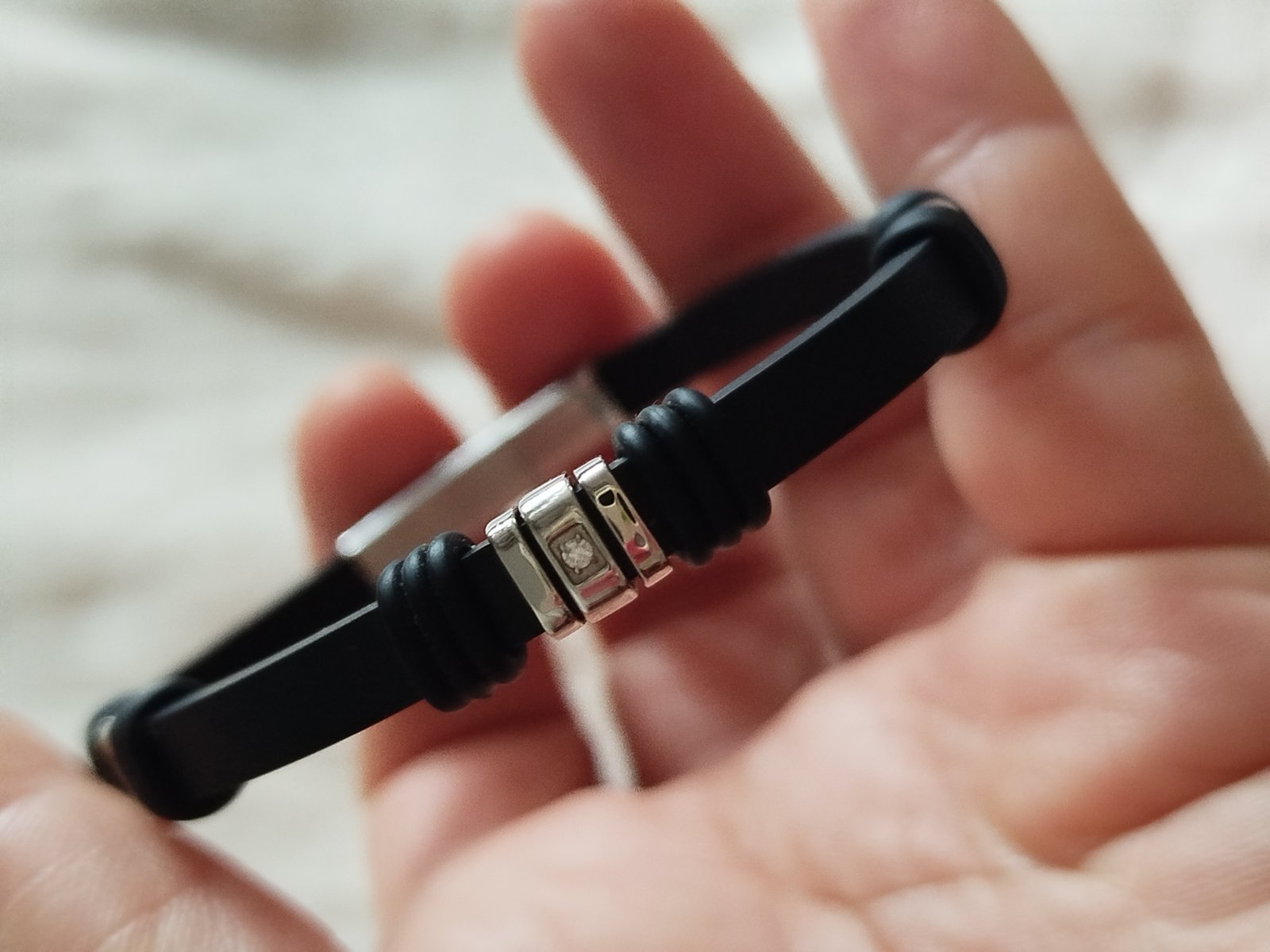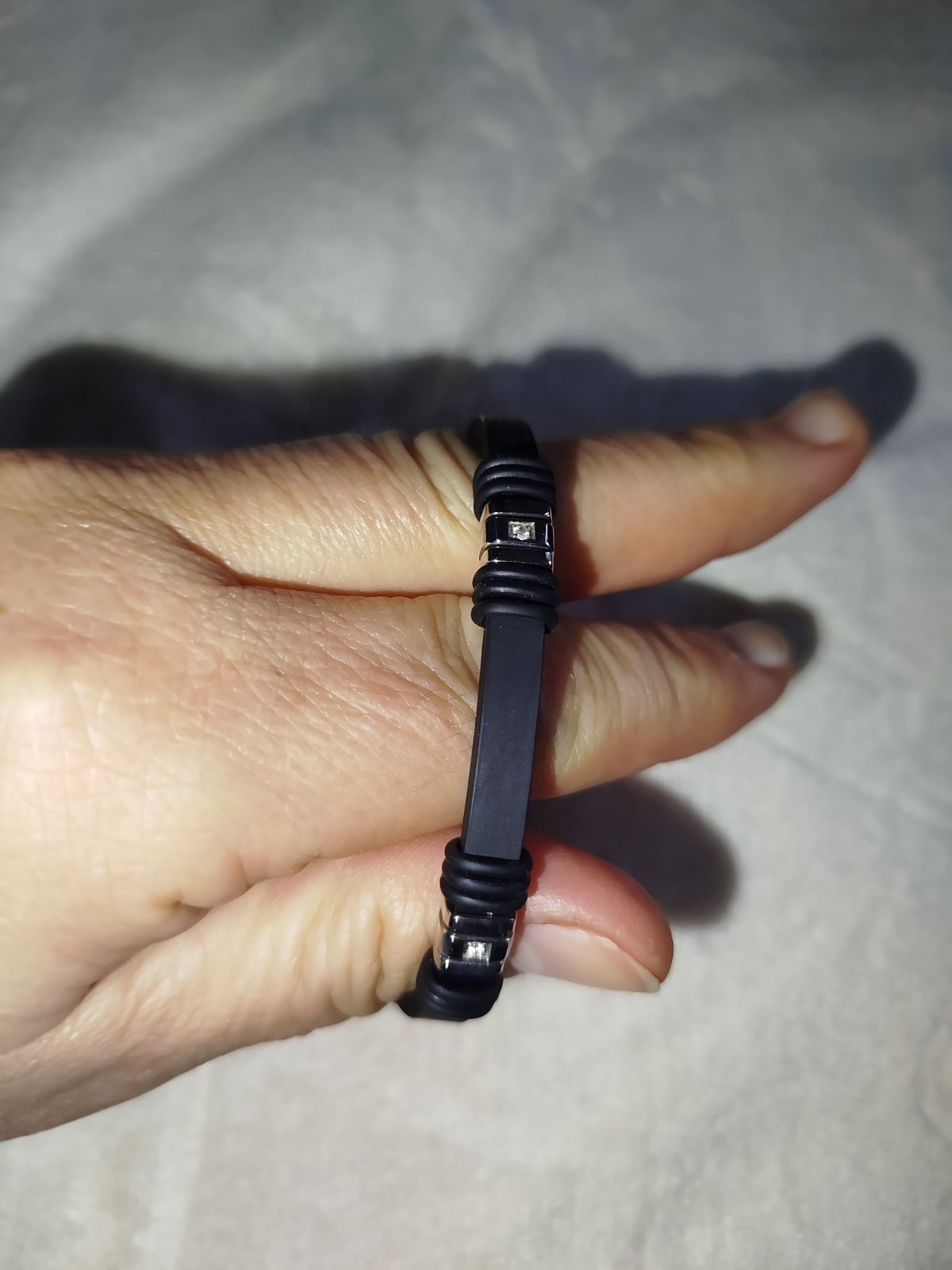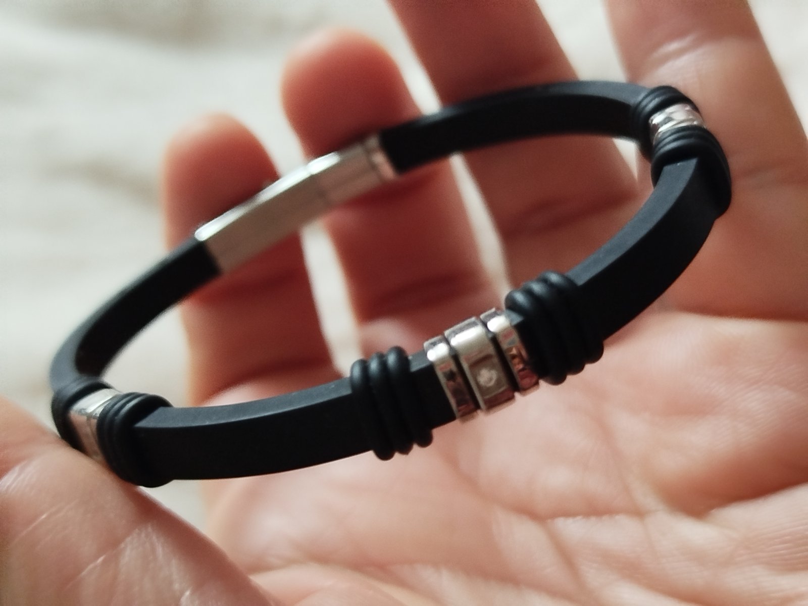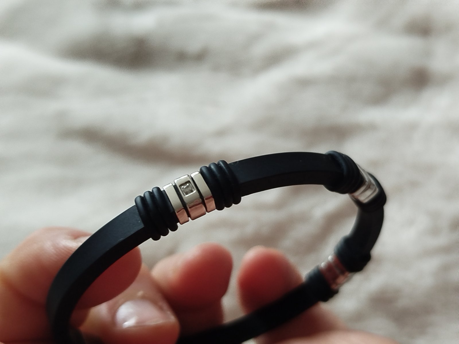 Pánsky náramok z kaučuku z chir.ocele a zirkónmi kvalitné zapínanie