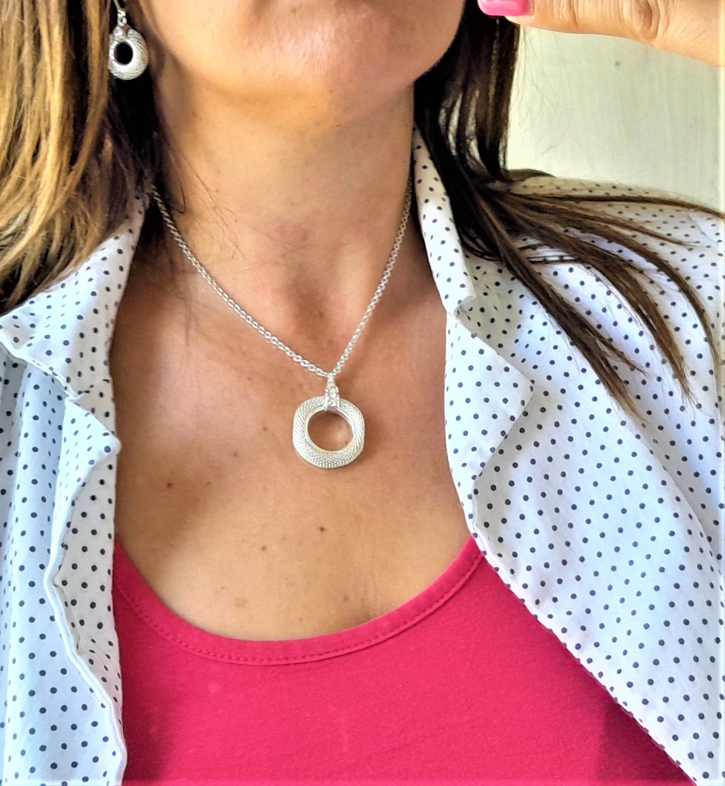 nevymieňam!!pár x na sebe,bižutéria,dĺžka náušníc 4cm,priemer 2 cm,náhrdelník,dĺžka 50cm,veľkosť nastaviteľná,priemer prívesku 2,7cm...kupované tuším v avone ale už dávno..kuk aj na iné moje inzeráty