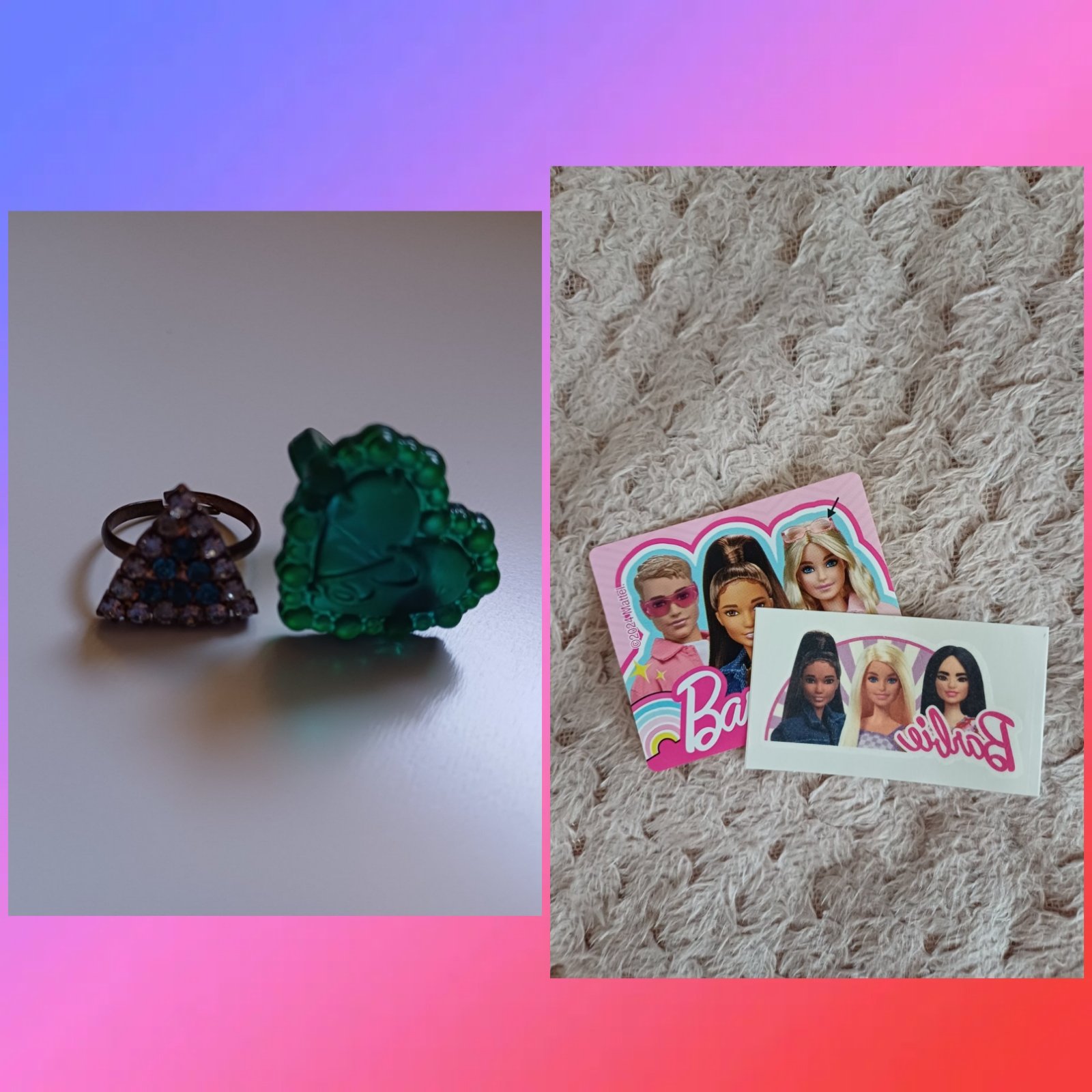 🎀 2ks dievčenské prstene,tyrkysový je asi Barbie,ale niesom si úplne istá.