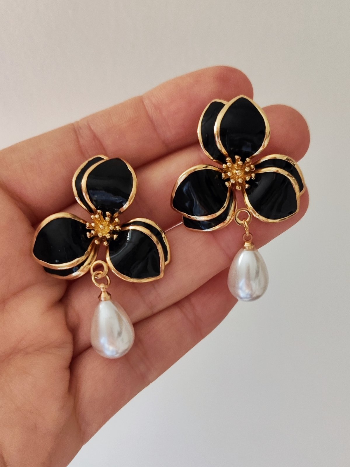 cierne hackovane nausnice. dlzka 5,5cm, sirka 4cm