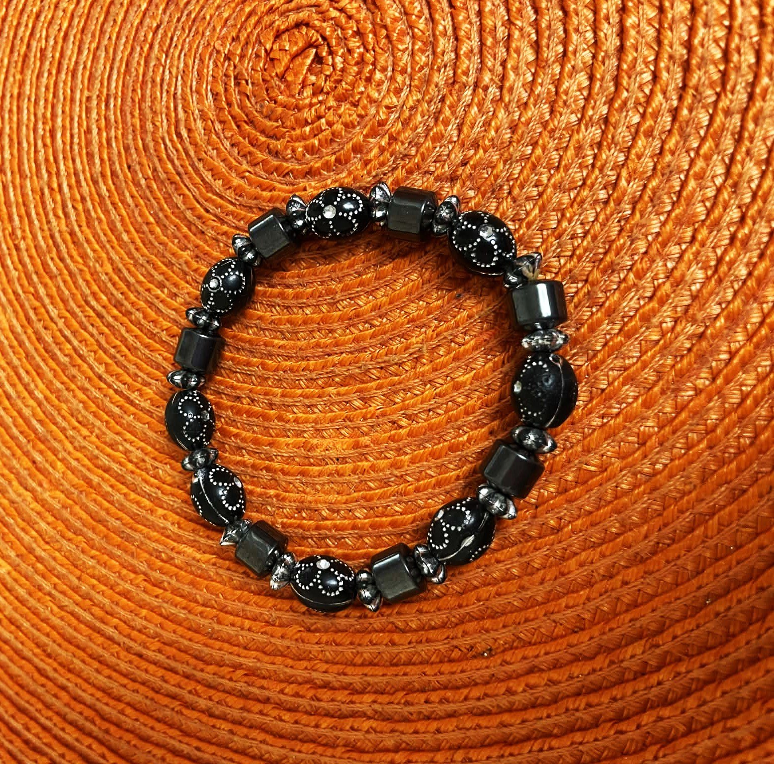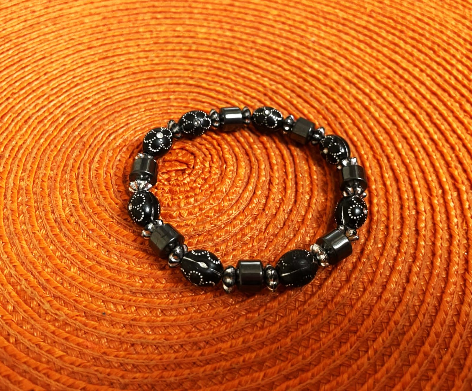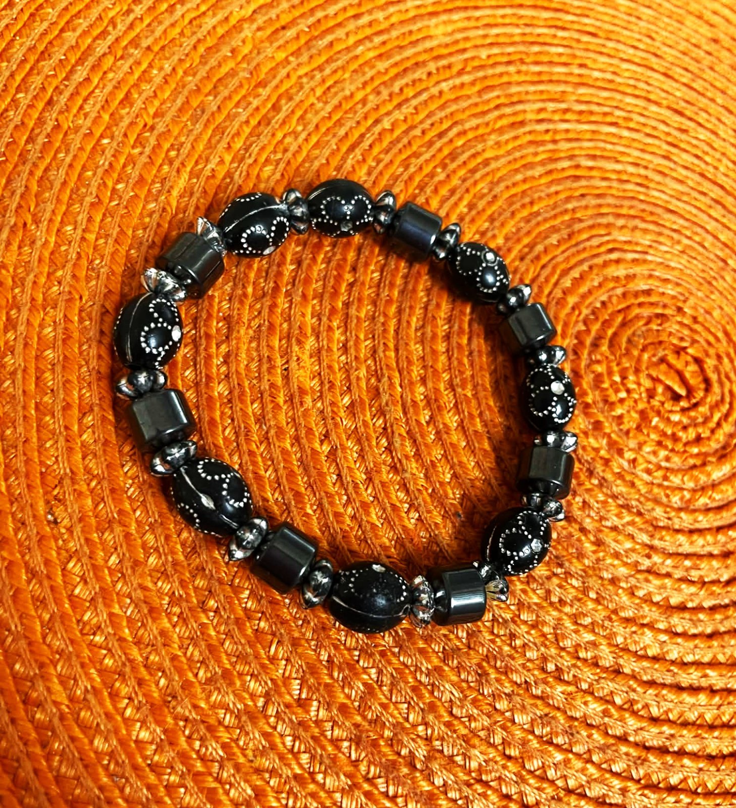 korálkový unisex náramok,na gumičku,obsahuje korálky a kovové akcenty, v top stave