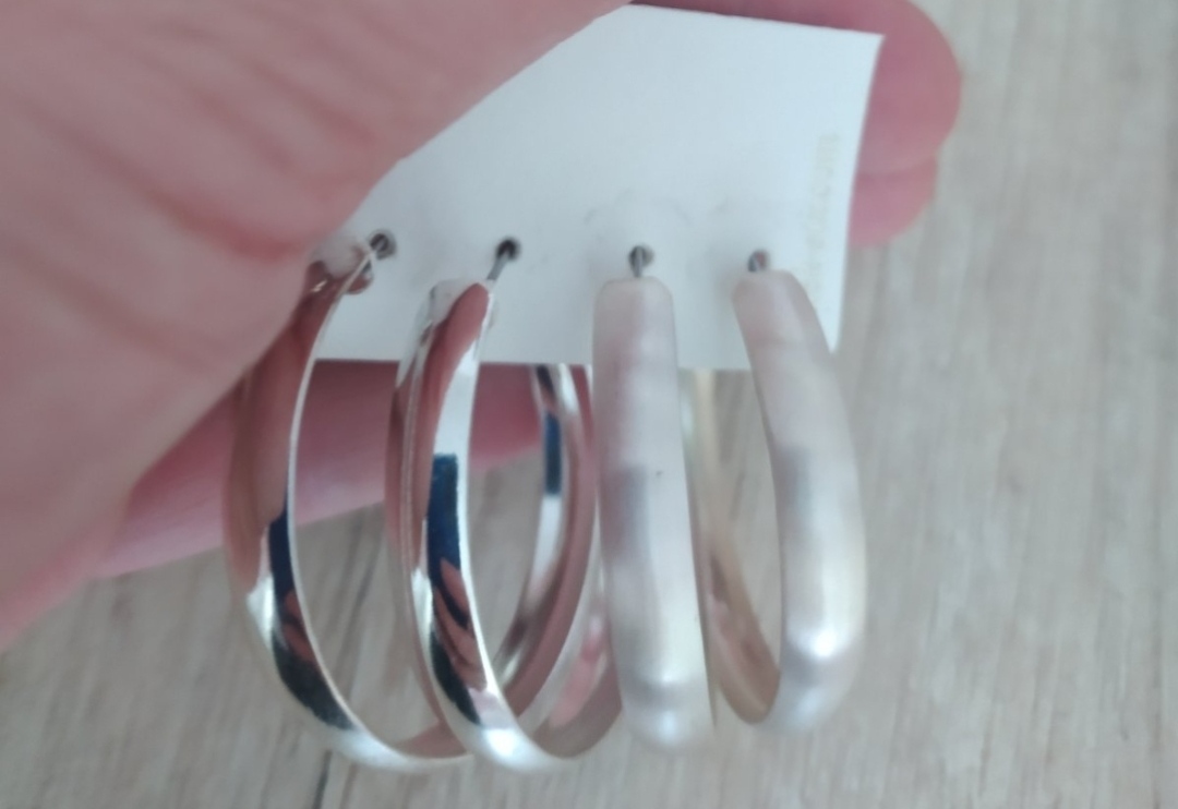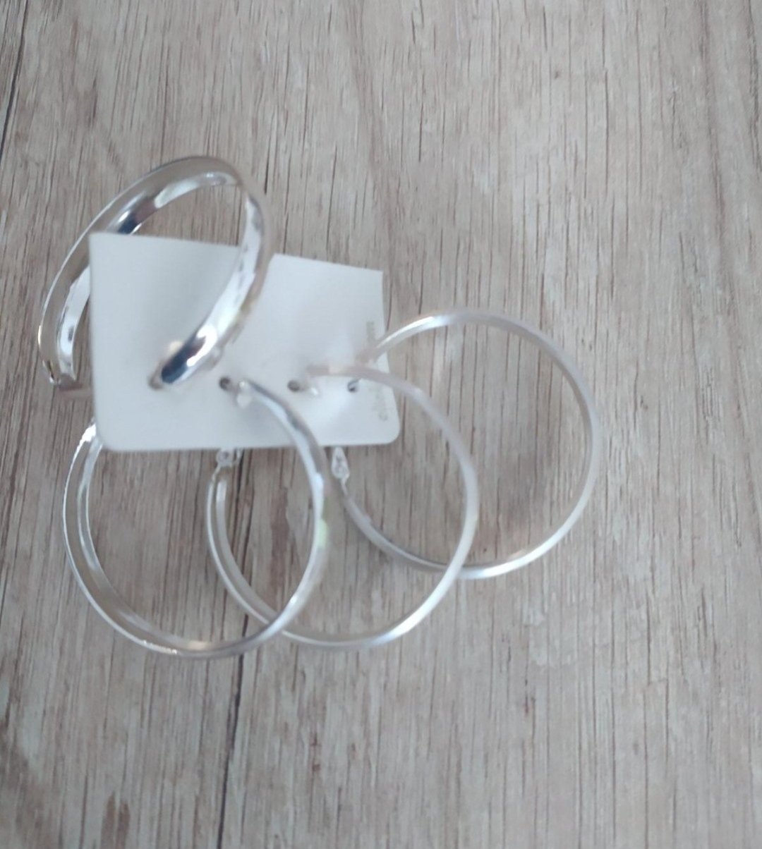 Predám nove náušnice striebornej farby.Je to bižutéria.Priemer 4.4cm,hrúbka 5mm.