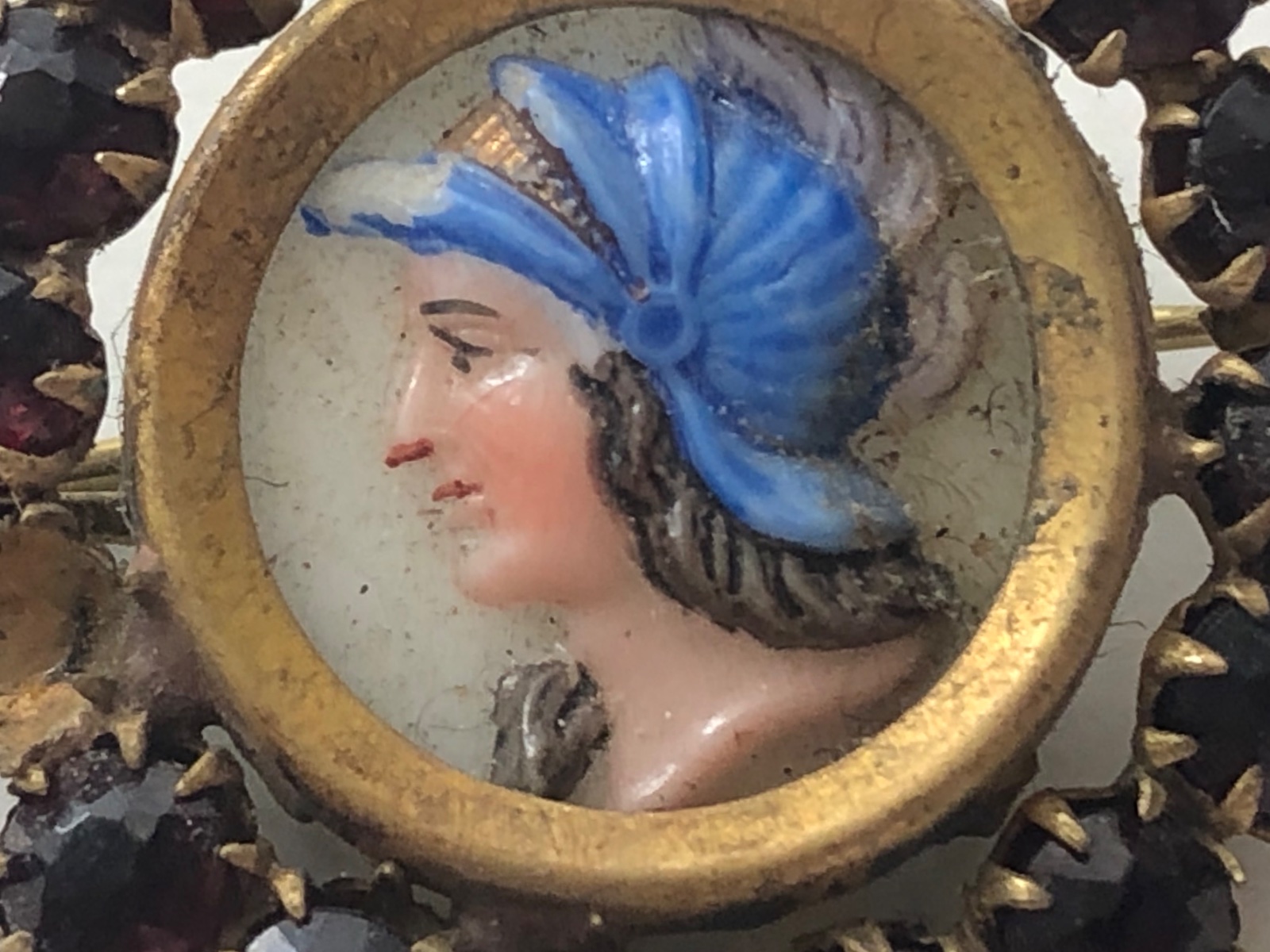Starozitna rucne malovana brosna s perletou granat