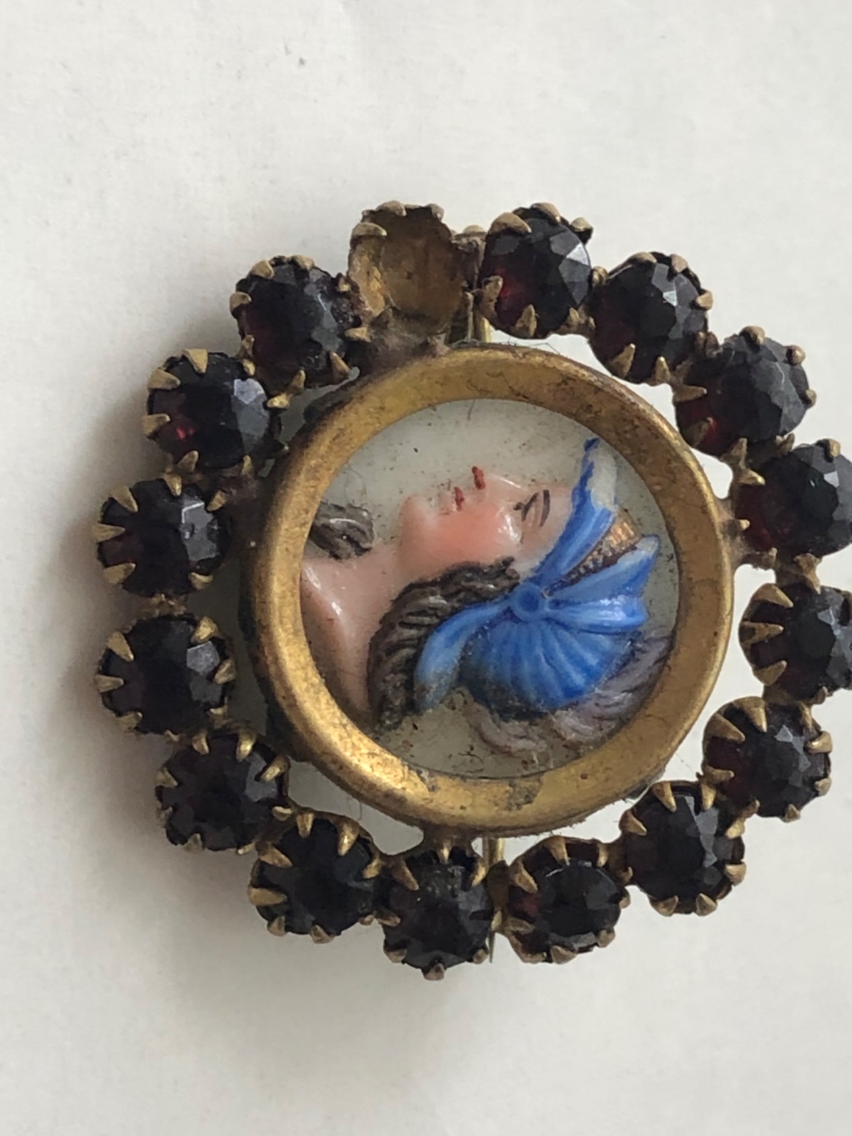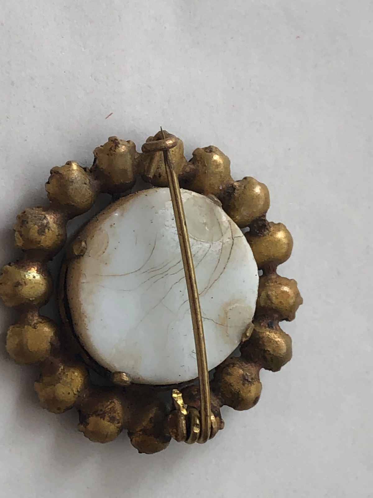Starozitna rucne malovana brosna s perletou 1 kamen chyba stav foto upozornujem
