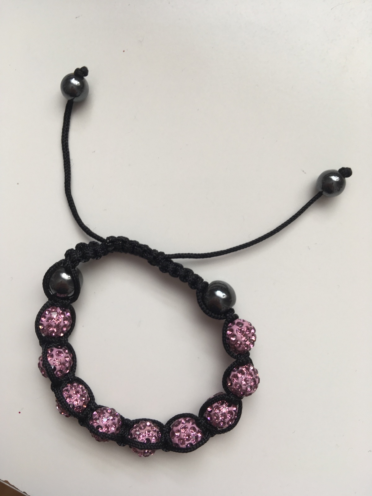 Predám shamballa náramky mnou robené. 2× bielo čierny 1× bielo čierno ružový 1× čierno hnedo zelený. Náramky sú robené z korálok vo veľkosti 10mm. Čierne lesklé korálky kombinované so shamball...