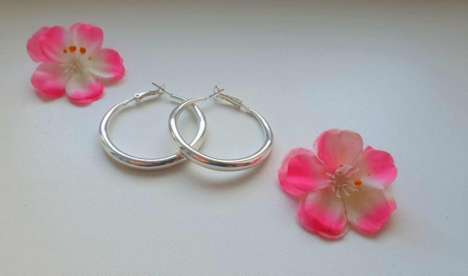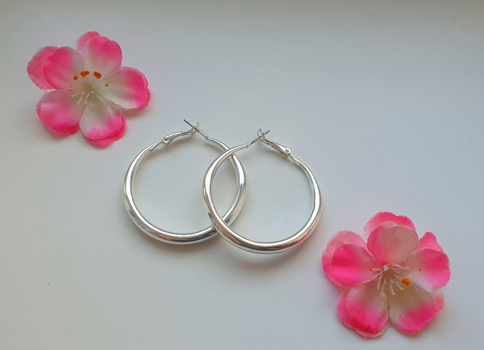 Nové kruhové náušnice striebornej farby. Priemer 4 cm