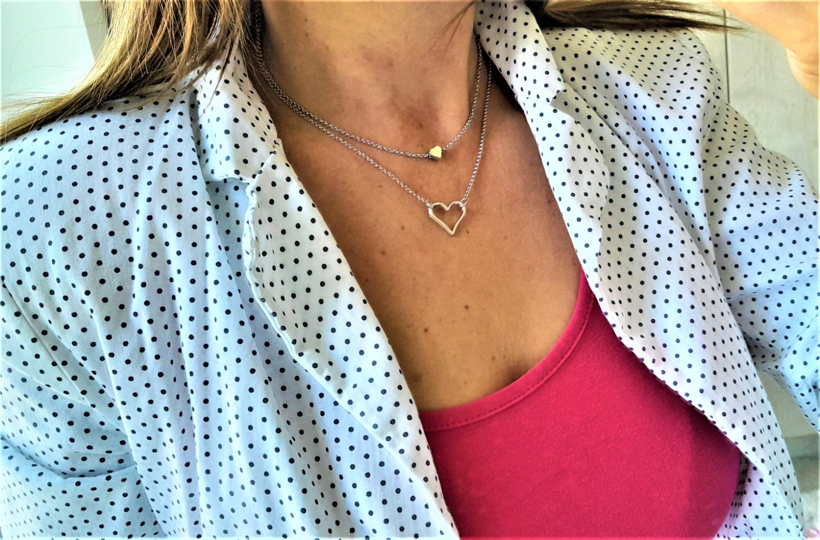 nevymieňam!!raz na krku,bižutéria,dĺžka vrátane zapínania-49cm,srdiečko veľké 2cm,malé 0,7cm.kuk aj na iné moje inzeráty
