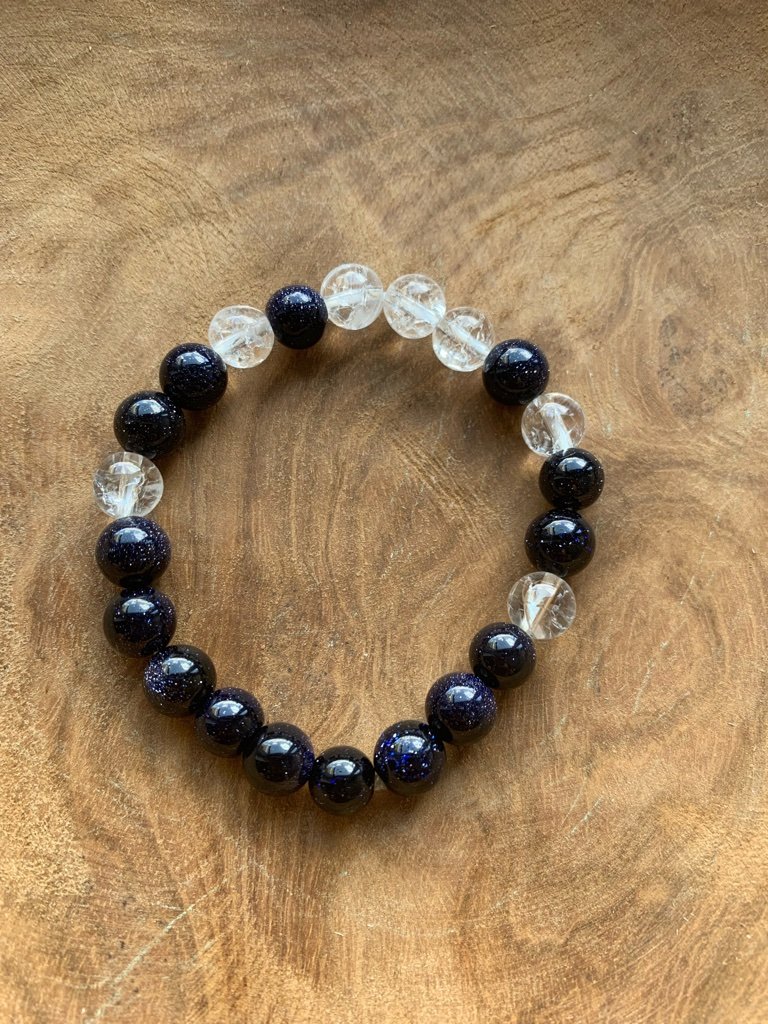 Krasny trblietavy naramok z modreho avanturinu a kristalu, velkost gulicky 8mm