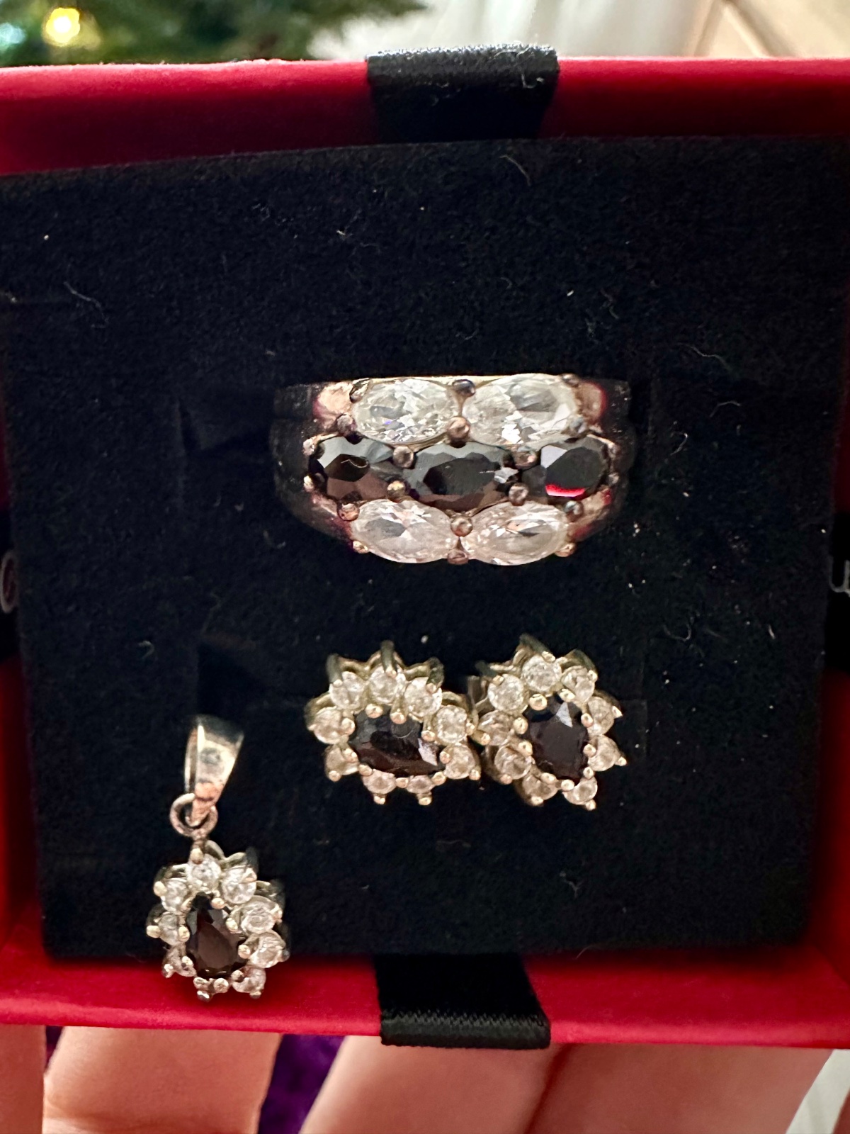 Krasny strieborny set c ciernymi a bielymi kristal