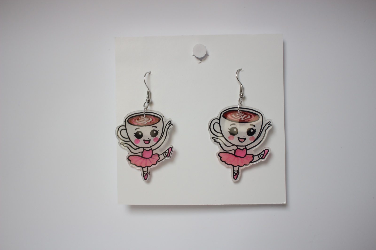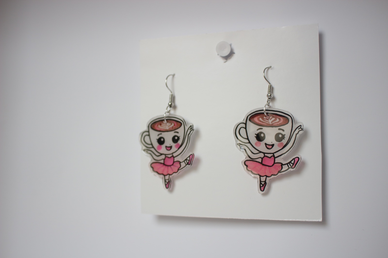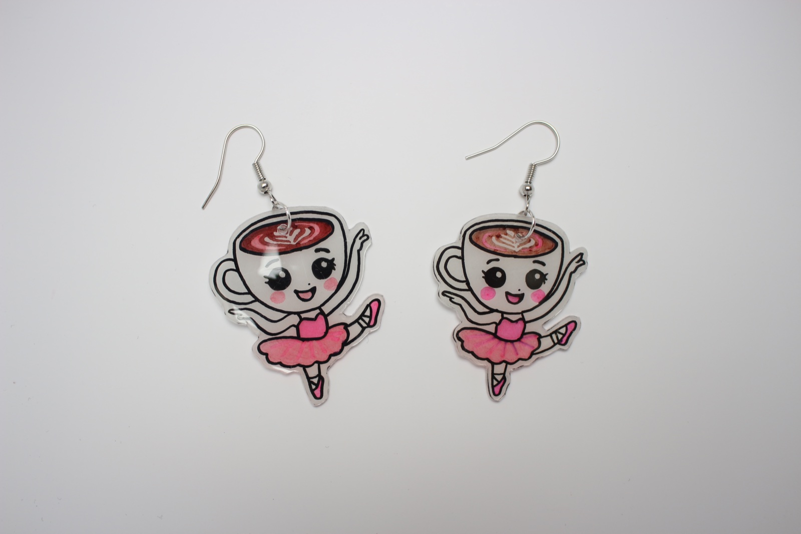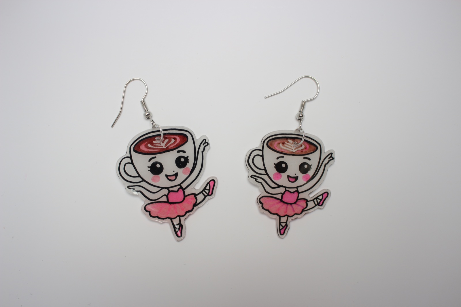 Originálne ručne vyrobené náušnice z plastu s autorskou ilustráciou roztomilej baletky Balleriny cappucciny - inšpirácia talianskym brainrotom ☕🩰.