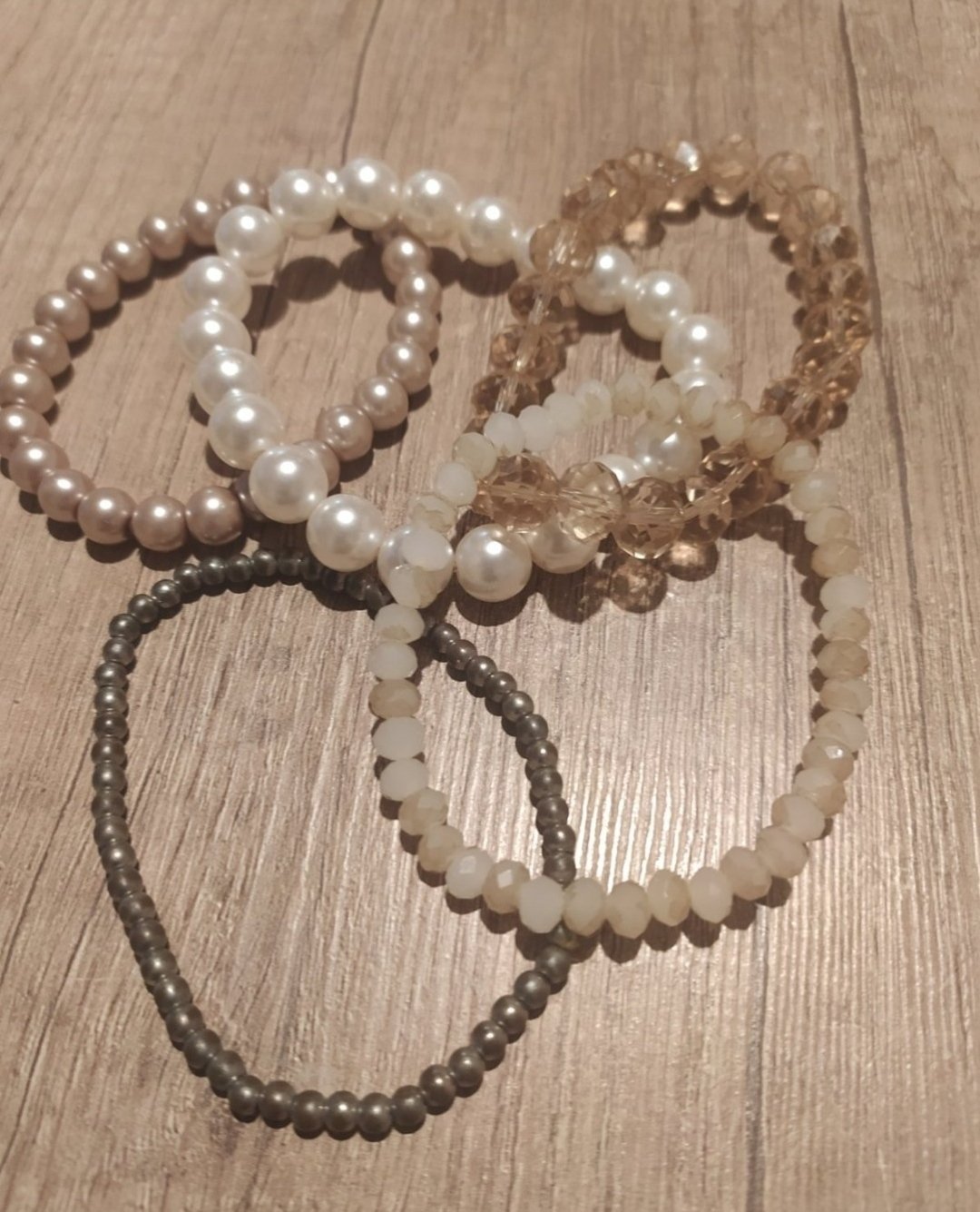 Predám tieto dva náramky pre družičky alebo pre svadobné mamy, sú čisto nové nepoužité. Cena za jeden 1,50€.
