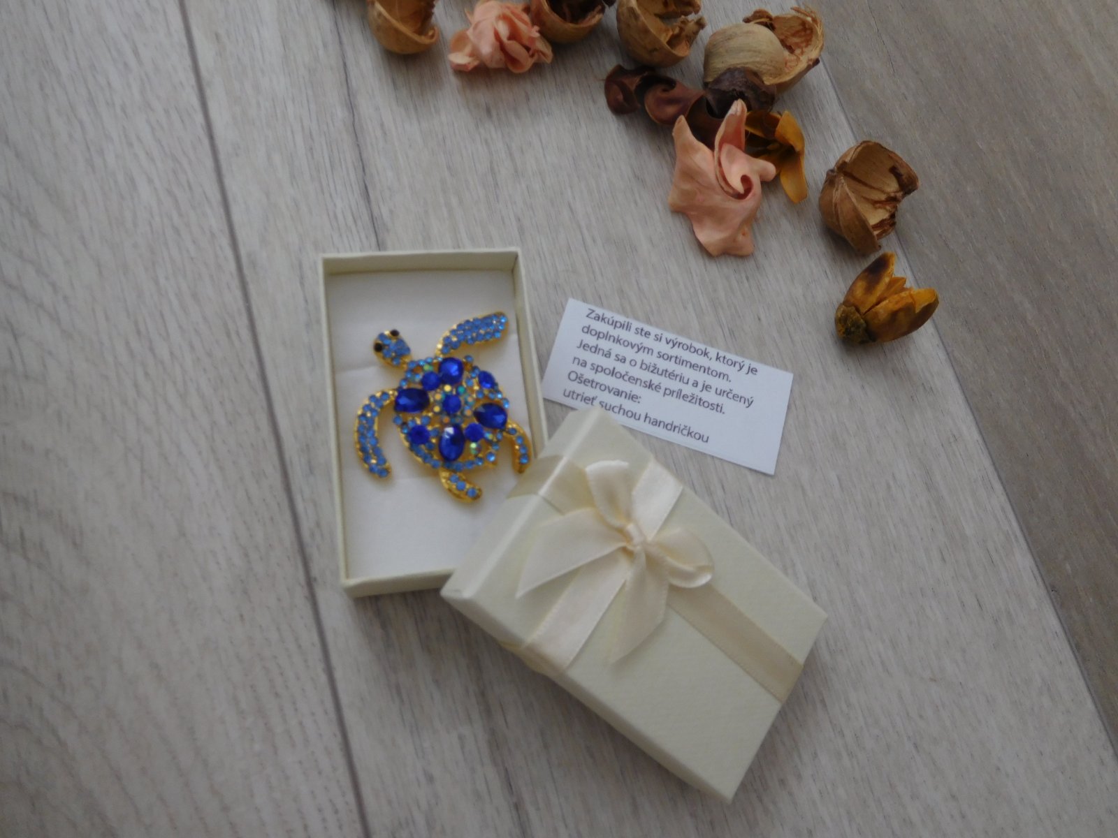 Brošňa kovová korytnačka do modra, šras,-NOVÁ