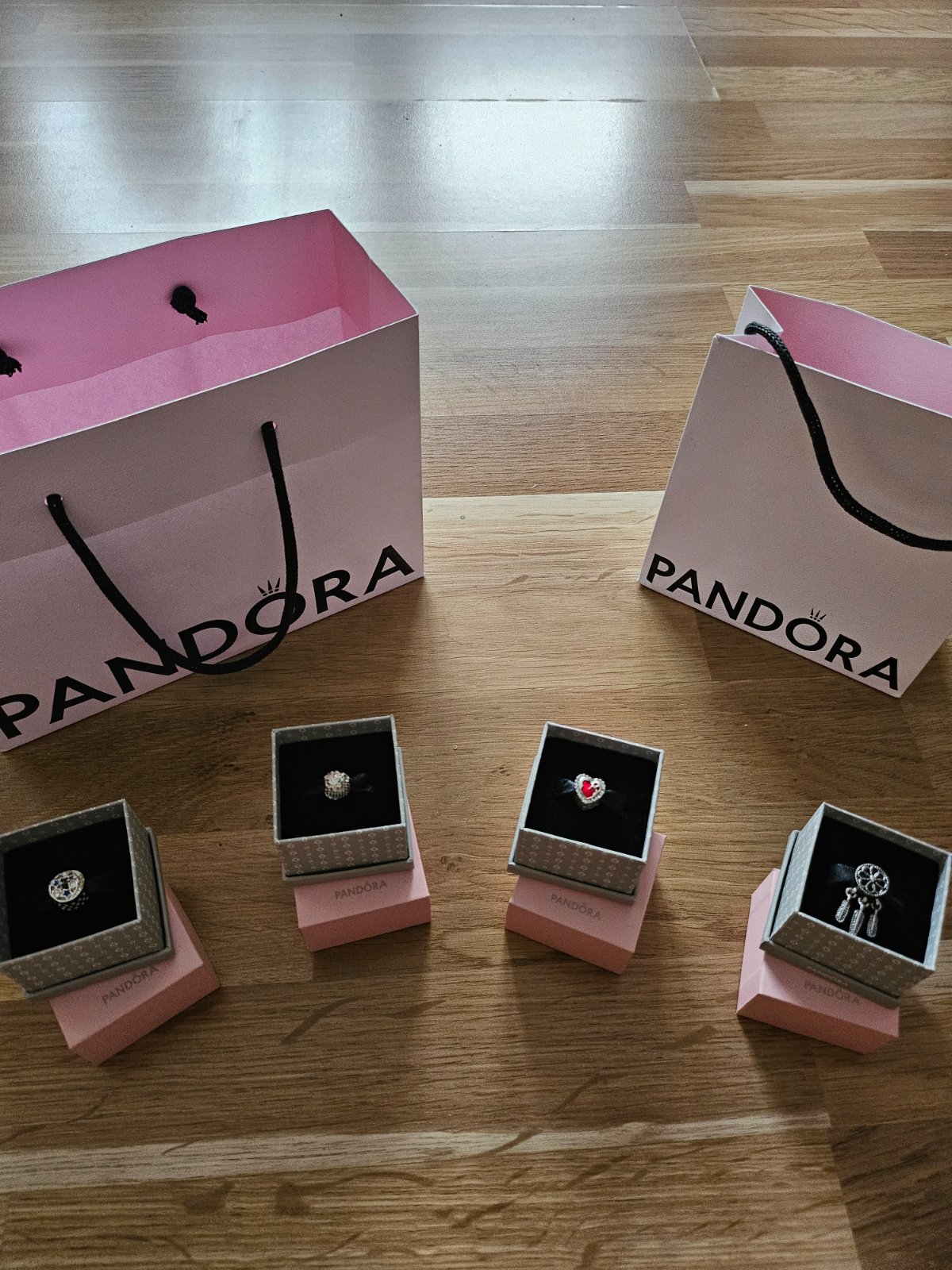 Nový strieborný prsteň Pandora lupene ruží. Veľkosť 54. Cena 30€.