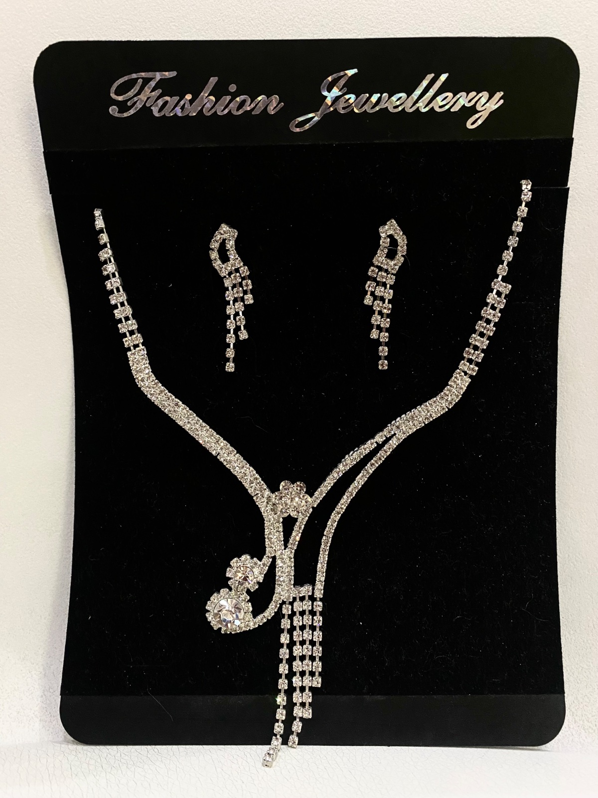 Elegantná sada módnej bižutérie na čiernom podklade s nápisom „Fashion Jewellery“.