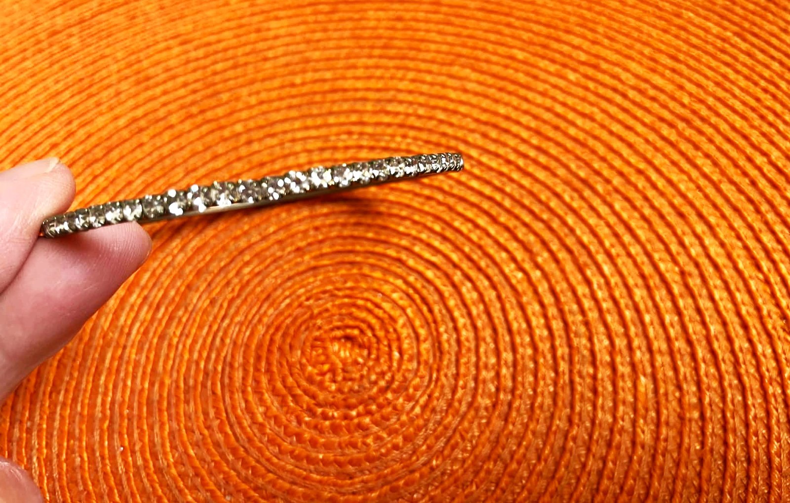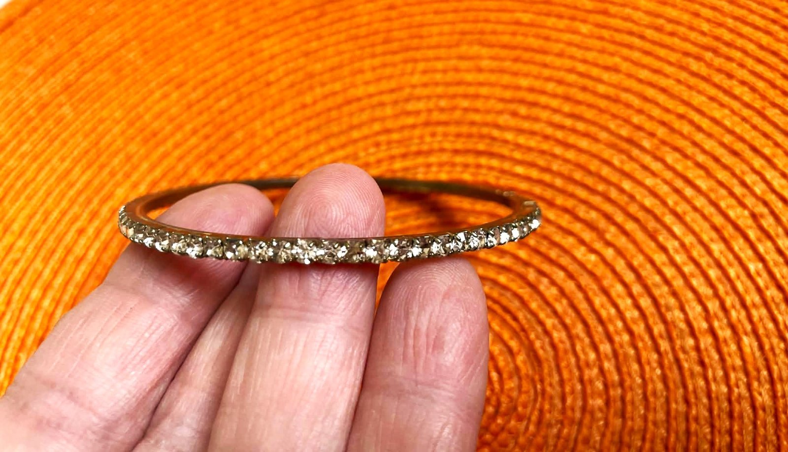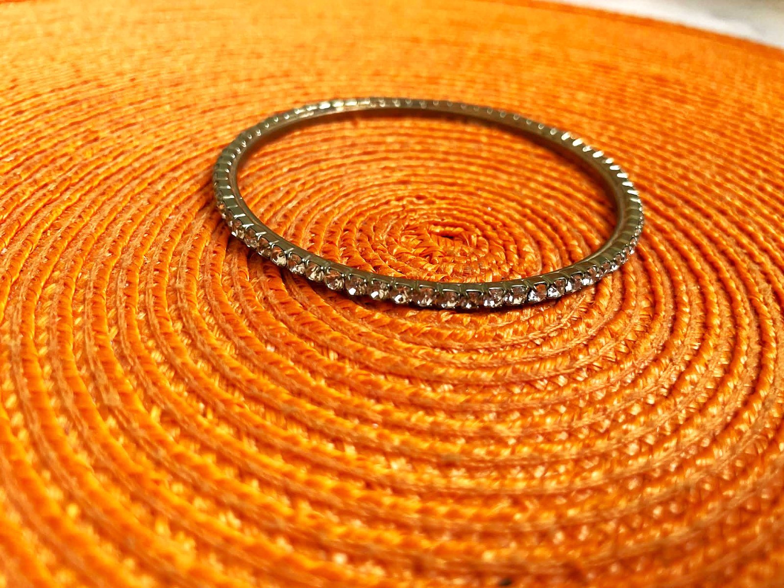 jemný tenučký štrasový náramok s trblietavými kamienkami po obvode, je pevný - nie na gumičku