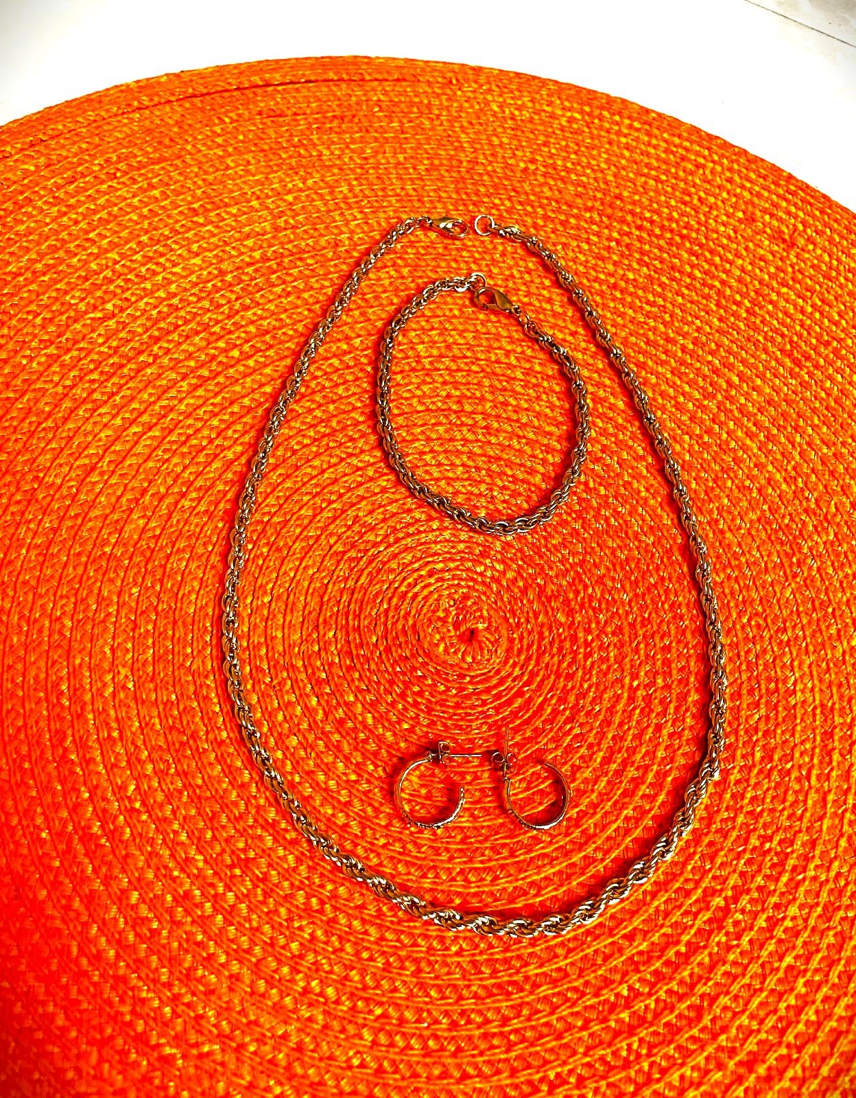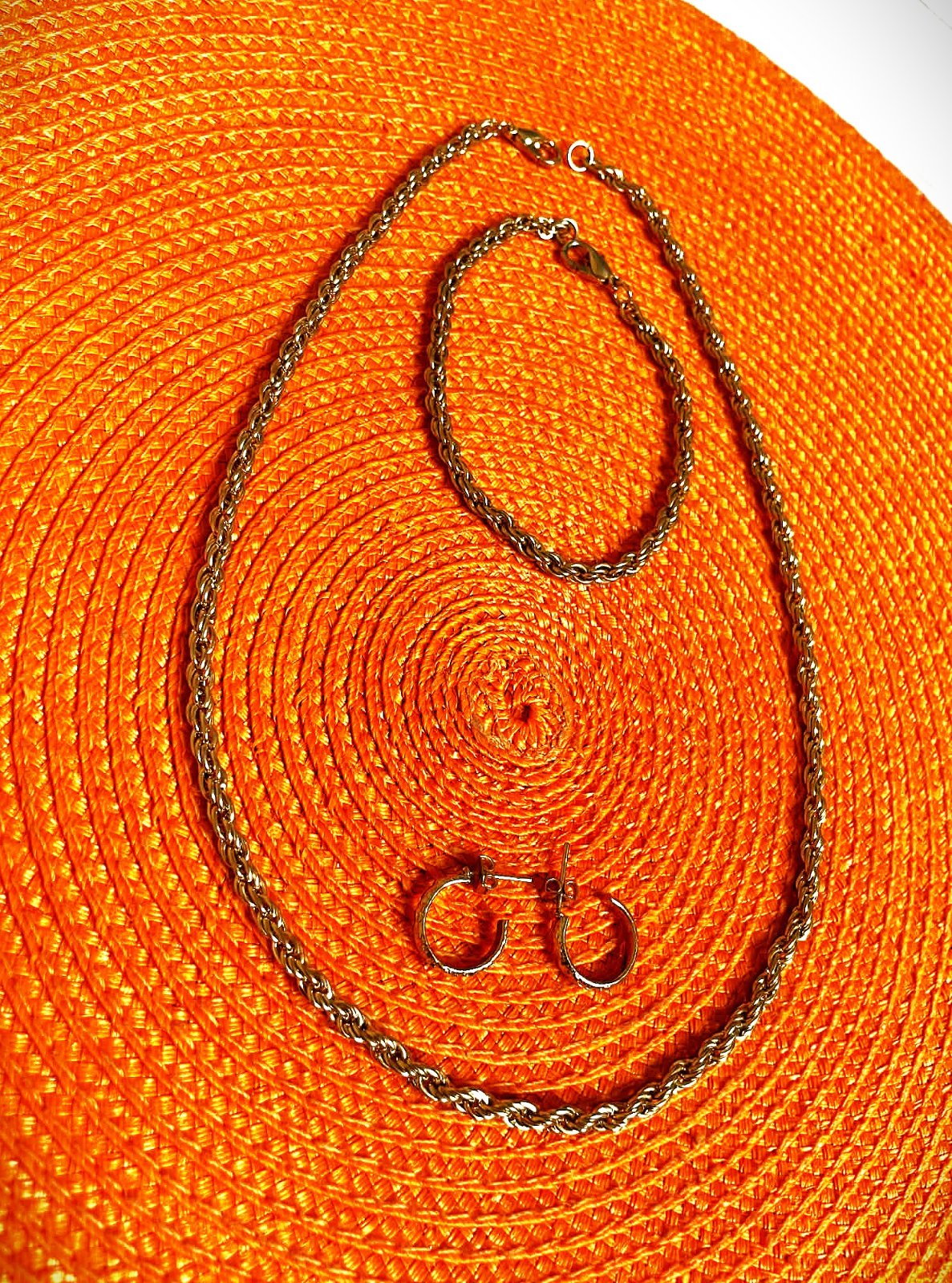 veľmi pekná a zaujímavá súprava,kvalitná bižutéria,nečerná,zvláštne zaujímavo štruktúrované reťazenie,náhrdelník =46 cm, náramok = 19,5 cm