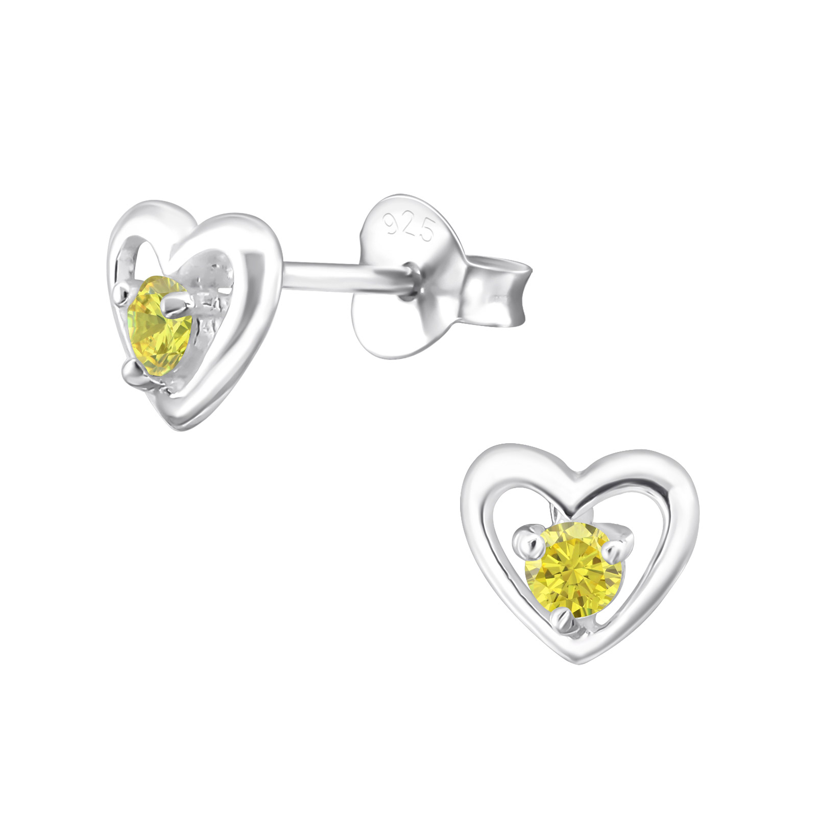 Strieborné puzetové náušnice - Srdce so zirkónom