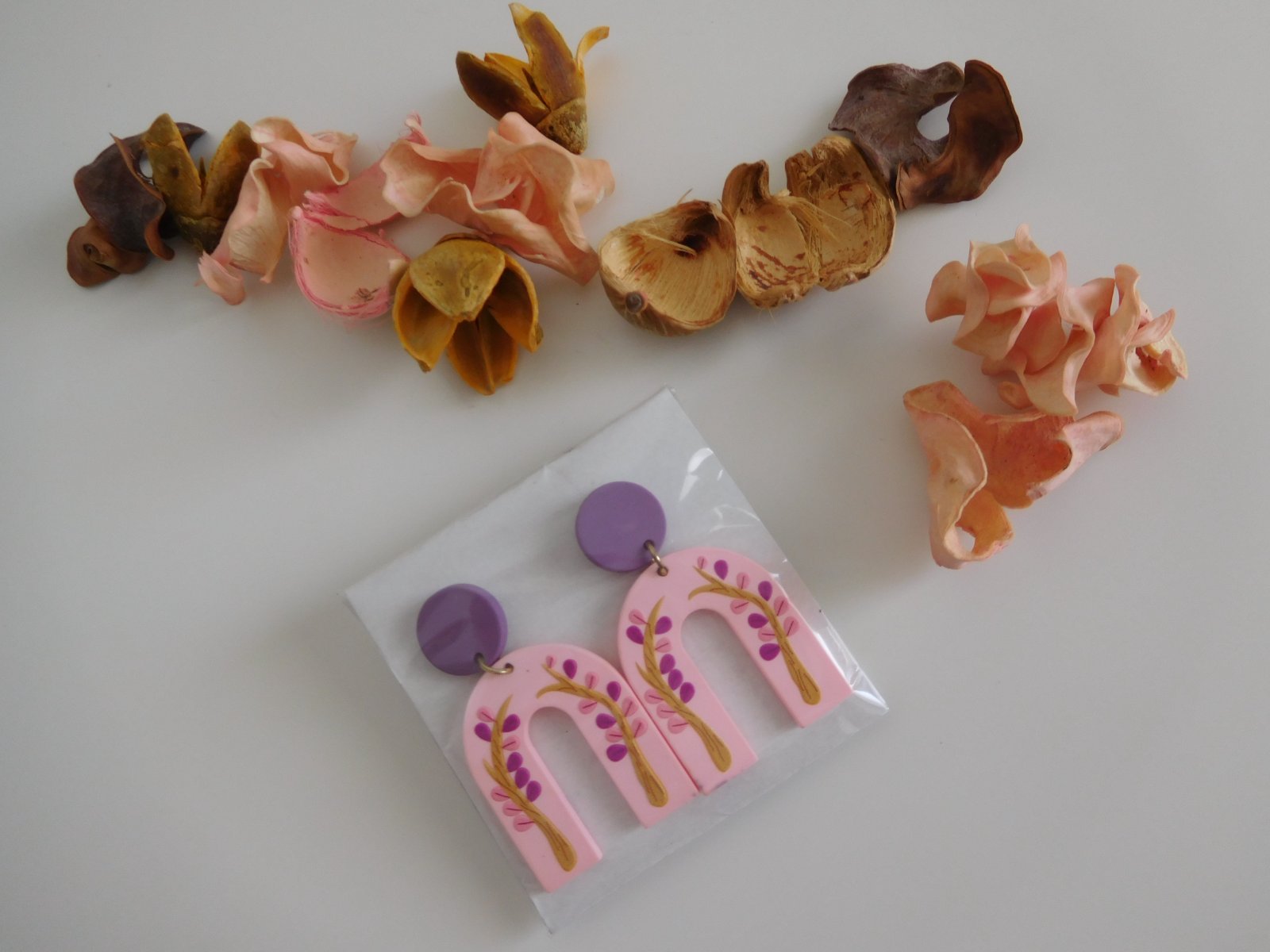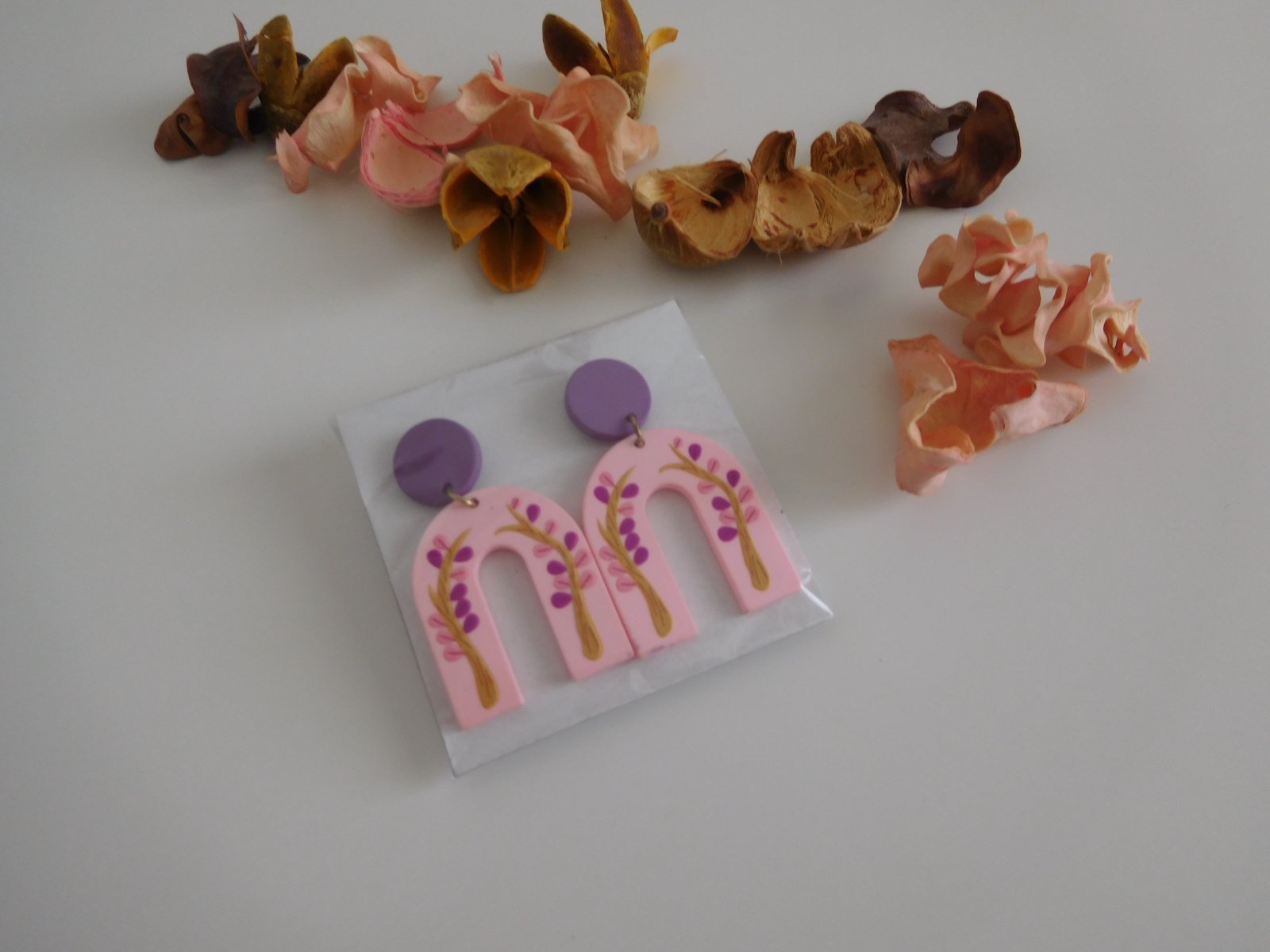Handmade náušničky v krasnej jemnej ružovej farbe s napichovacím zapínaním z chirurgickej ocele. Nalepovacie kamienky a kvietky sú nalepené na filigráne v striebornej farbe