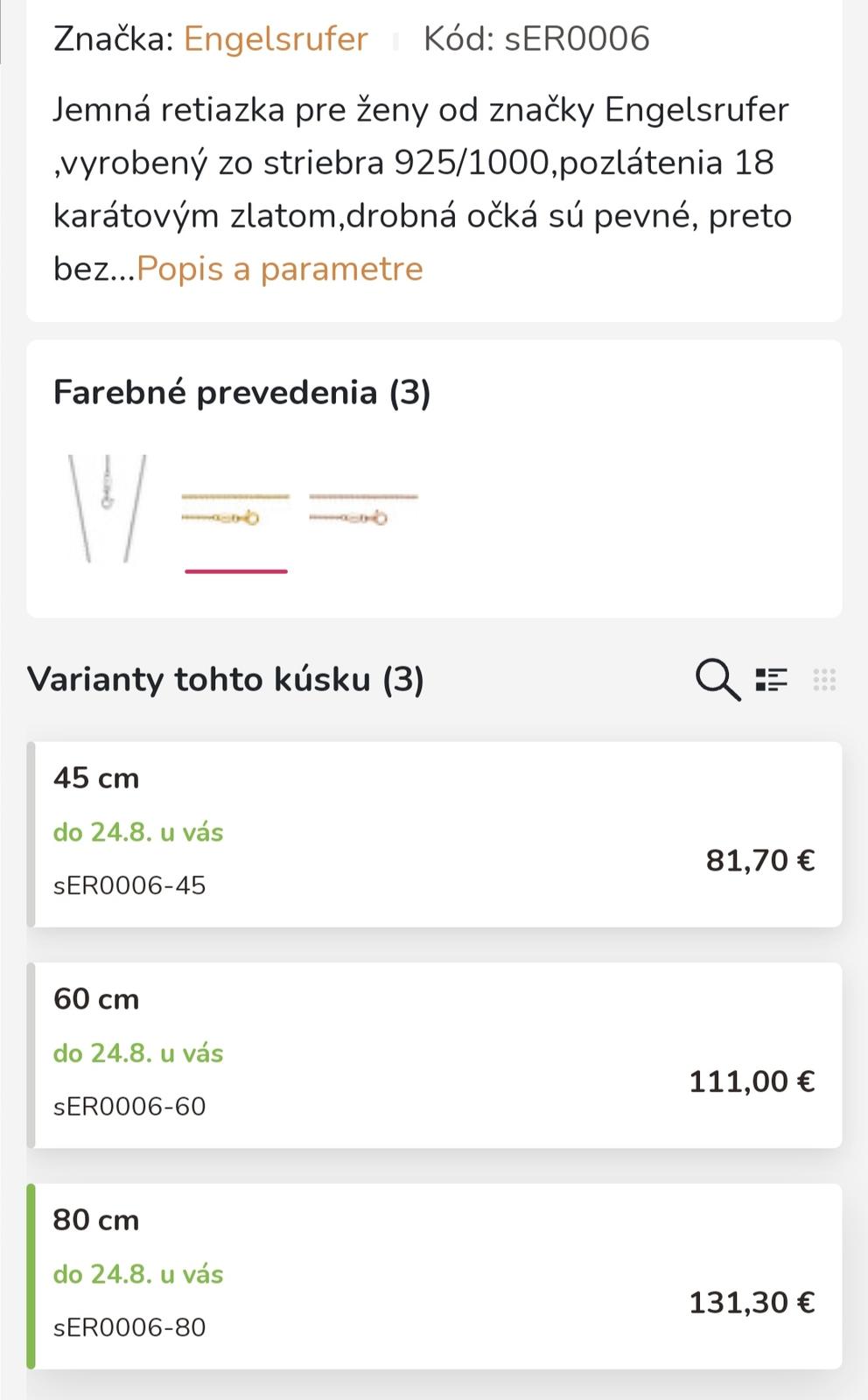 Pozlátená strieborná retiazka Engelsrufer 80 cm
