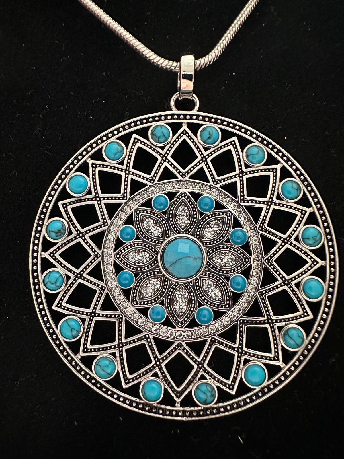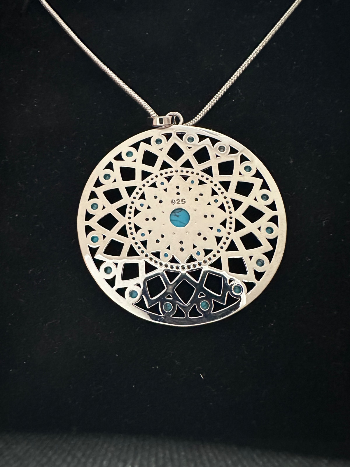 Veľký strieborný prívesok s tyrkenitom Mandala