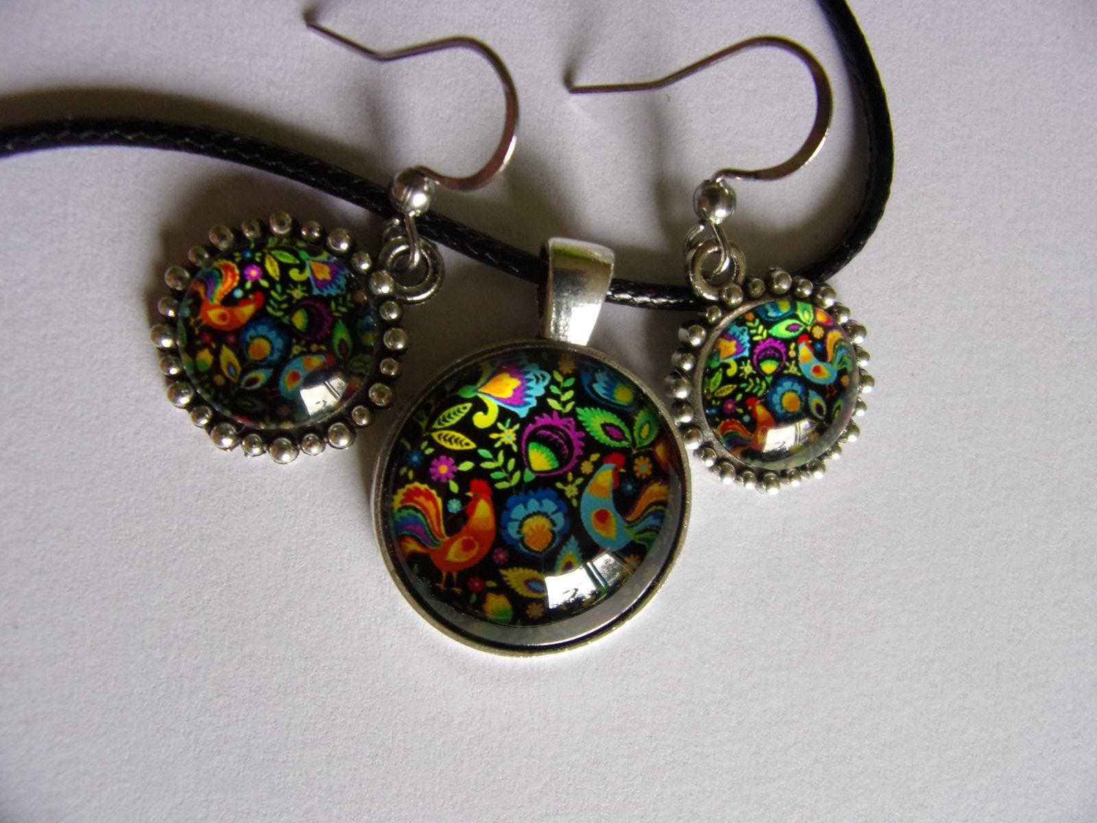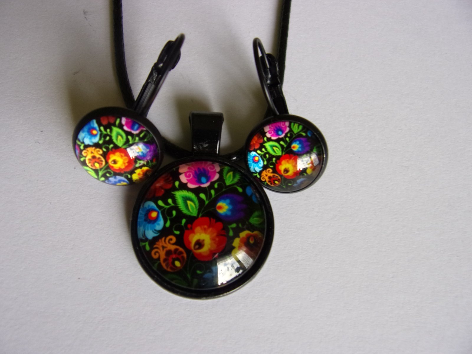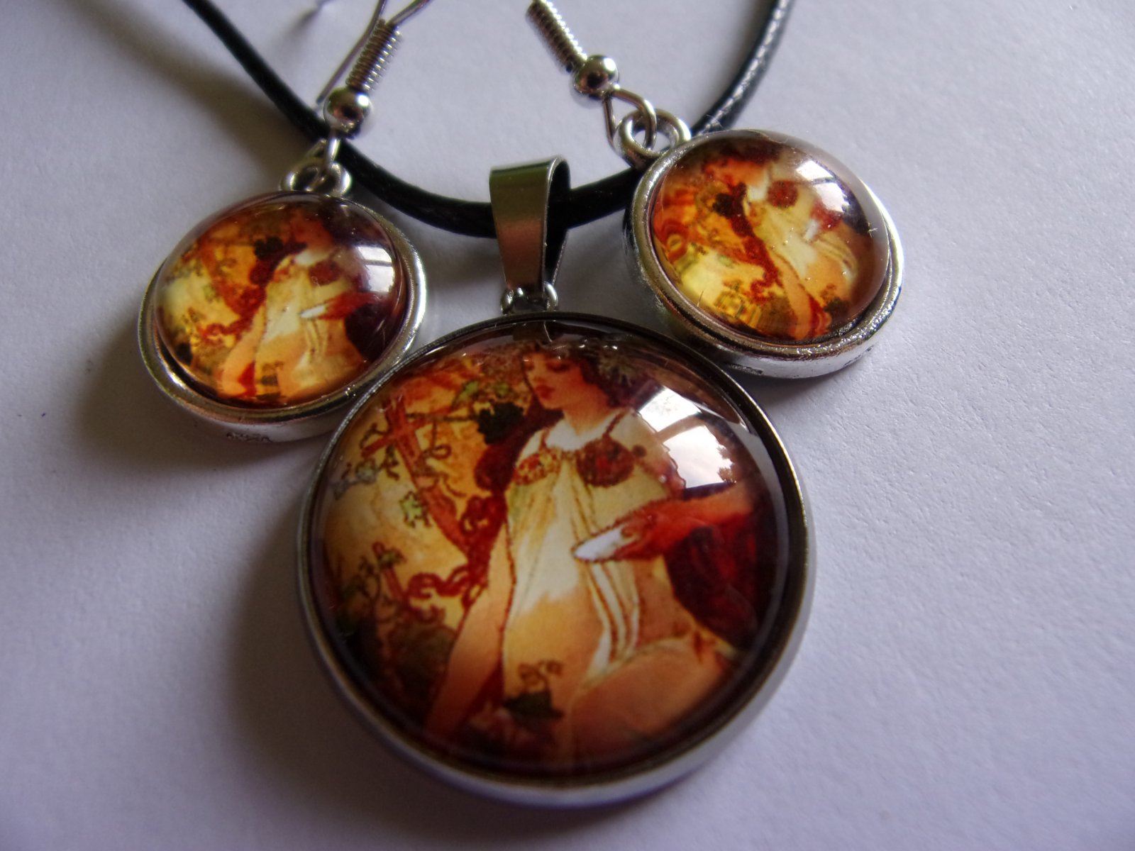 súprava prívesok a náušnice s motívom obrazov od Alfonza Muchu, folklórny ľudový motív aj modrotlač, aktuálna ponuka na jednotlivých fotkách (prvá ilustračná), cena za súpravu