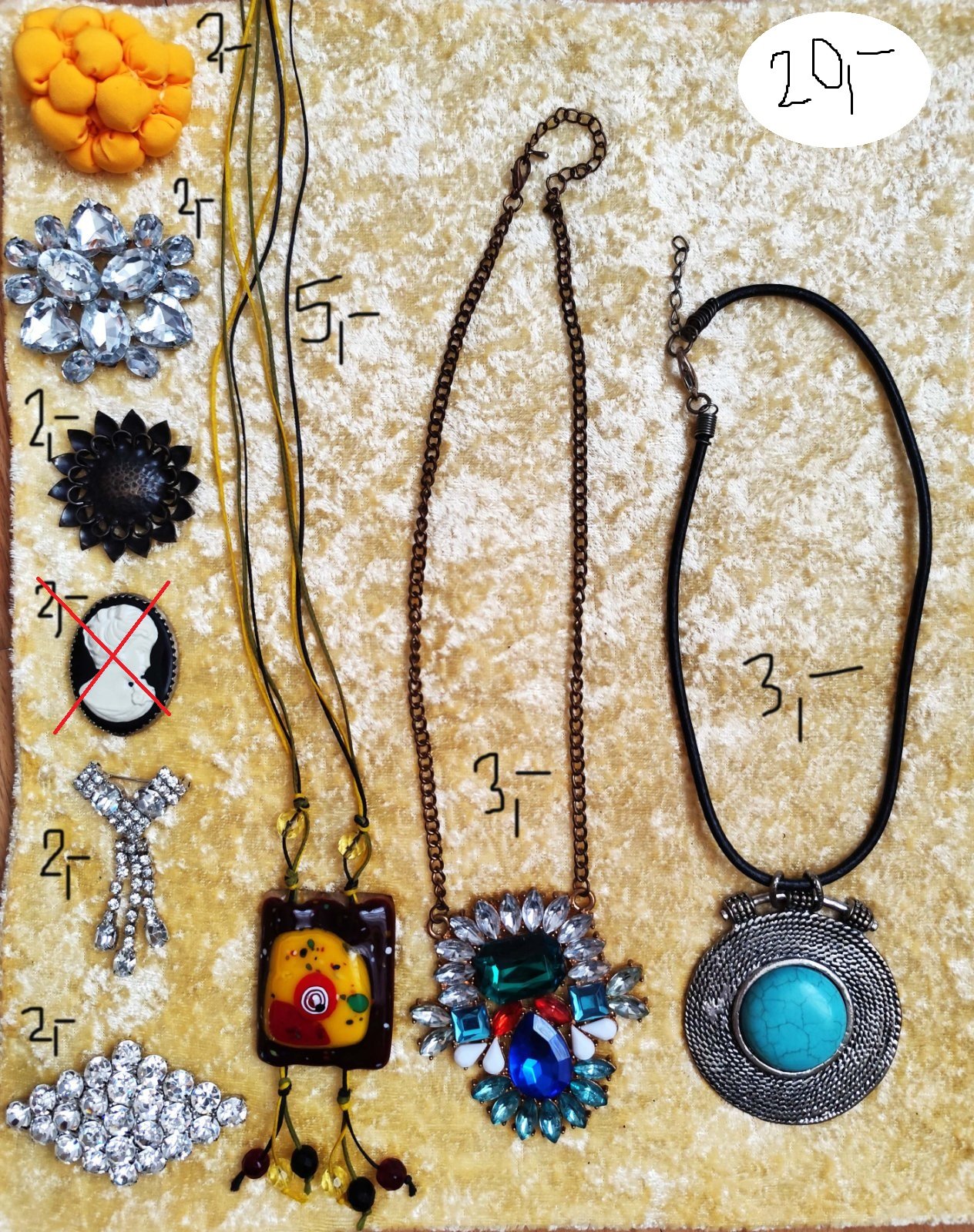 Šperky, minimálne nosené, niektoré kusy vôbec, ale majú svoj vek. Na obrázku sú ceny, pri jednotlivých šperkoch, Pri odbere viac kusov možná dohoda. Mám viacero podobných ponúk. Preferujem odposielanie cez paketu, kedže posielam z Českej republiky. K cene si pripočítajte poštovné. Cena za všetky šperky na obrázku spolu 20,- Eur. Možné aj jednotlivo.