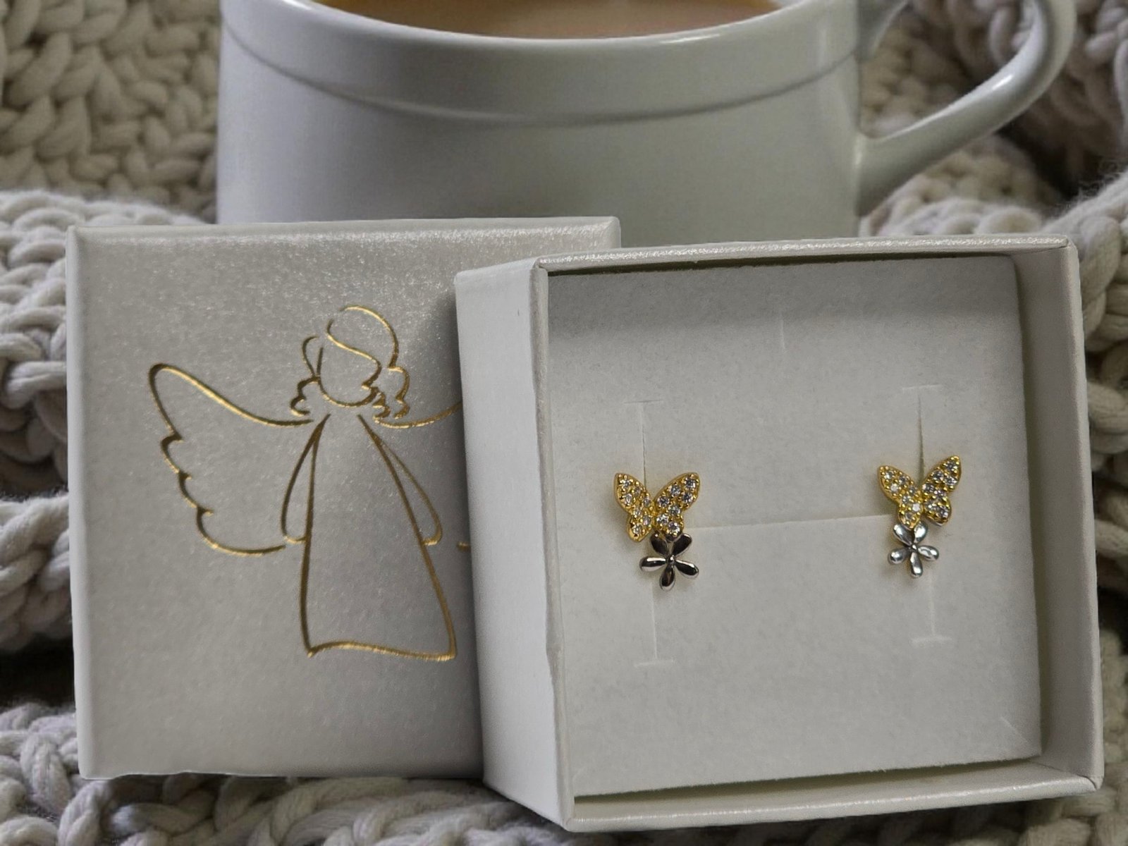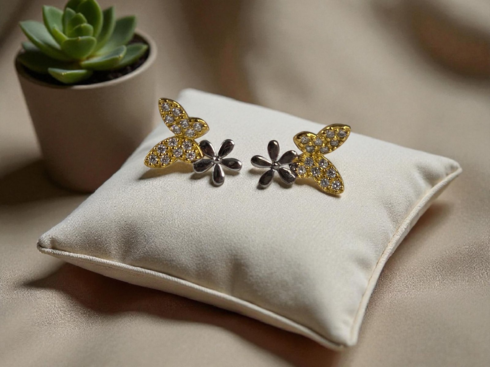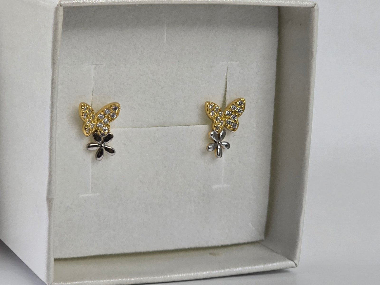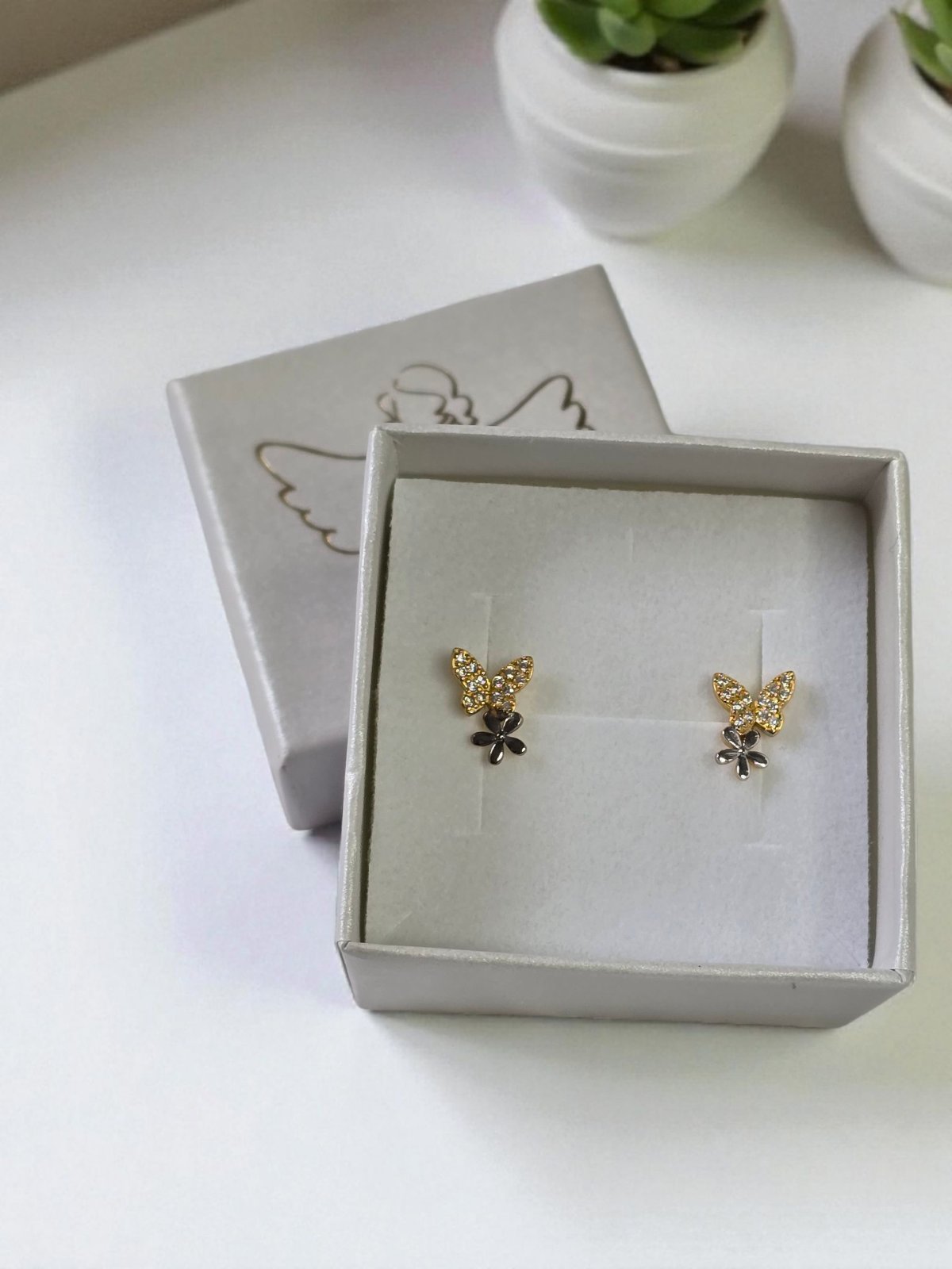 Pozlátený motýľ náušnice s kvetinou