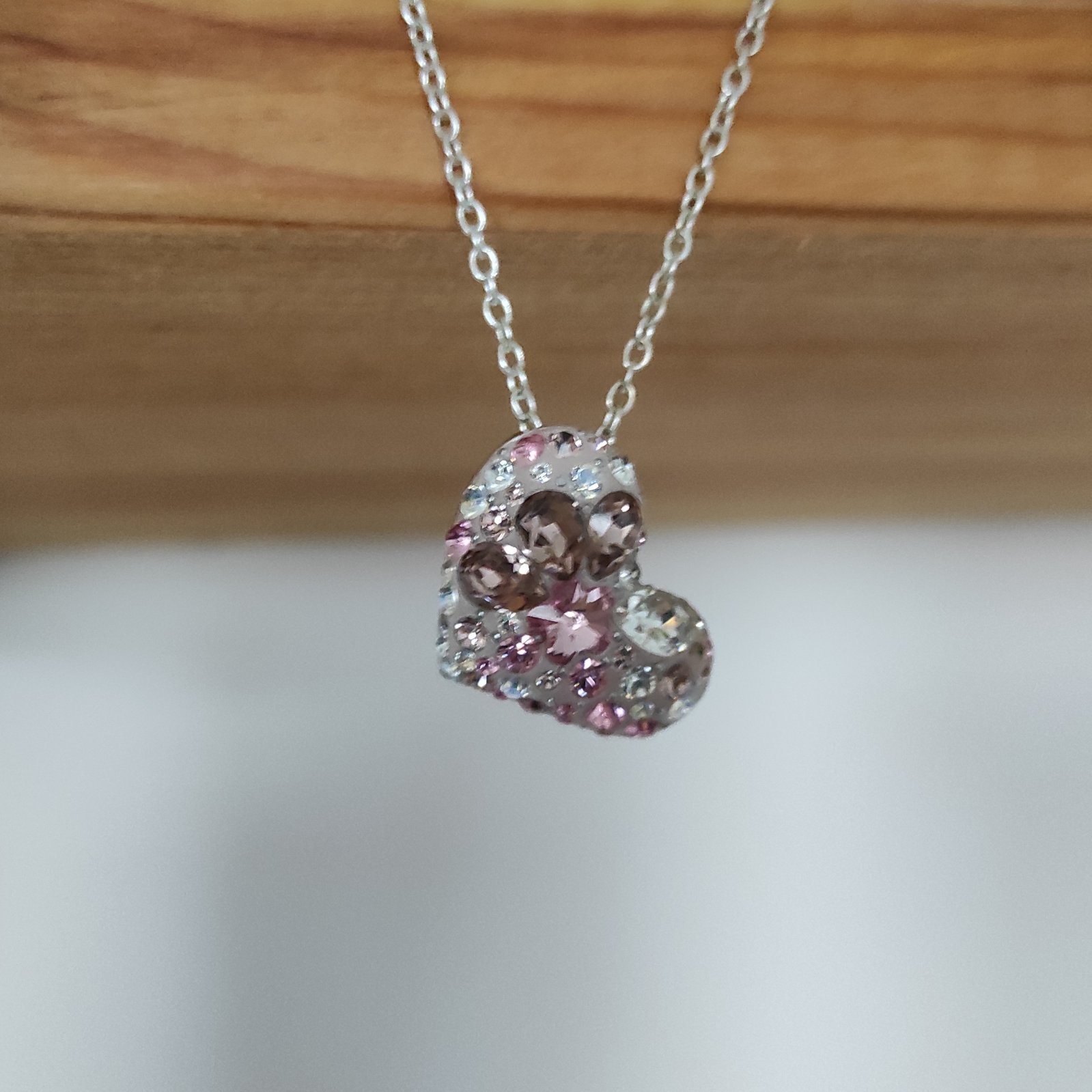Posúvam prívesok (bez retiazky). Zo zadnej strany je ošúchanie. Kamienky držia, žiadny nechýba. Ošúchanie nevidno, keďže prívesok je na krku stabilný a neotáča sa. Kupovala som ho spolu s retiazkou v pôvodnej cene 160€.