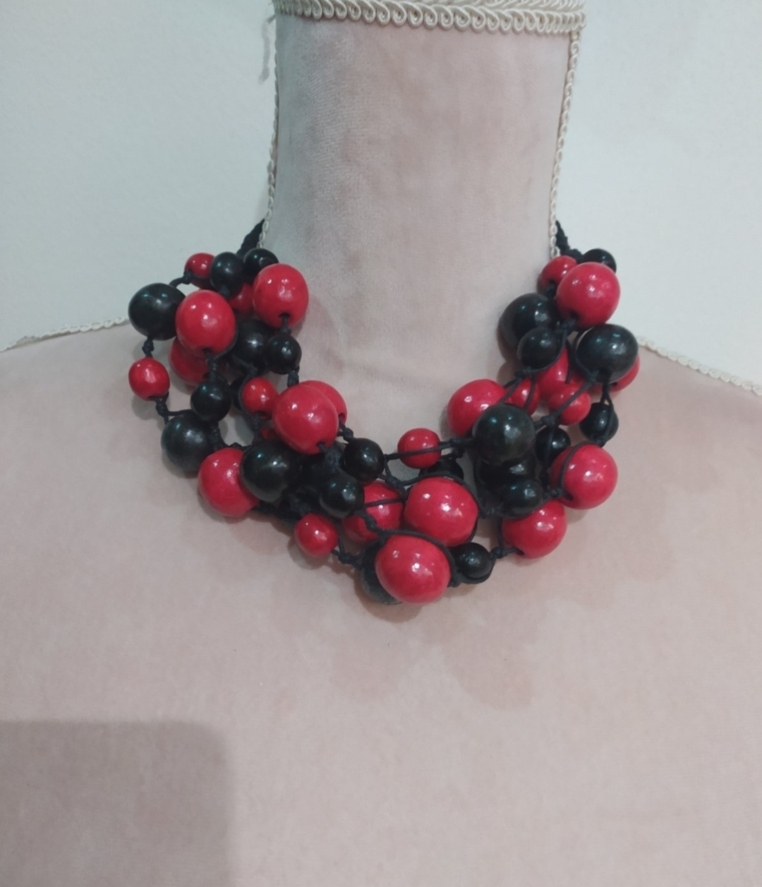 Viacradovy náhrdelník,z drevených koralok, nenoseny