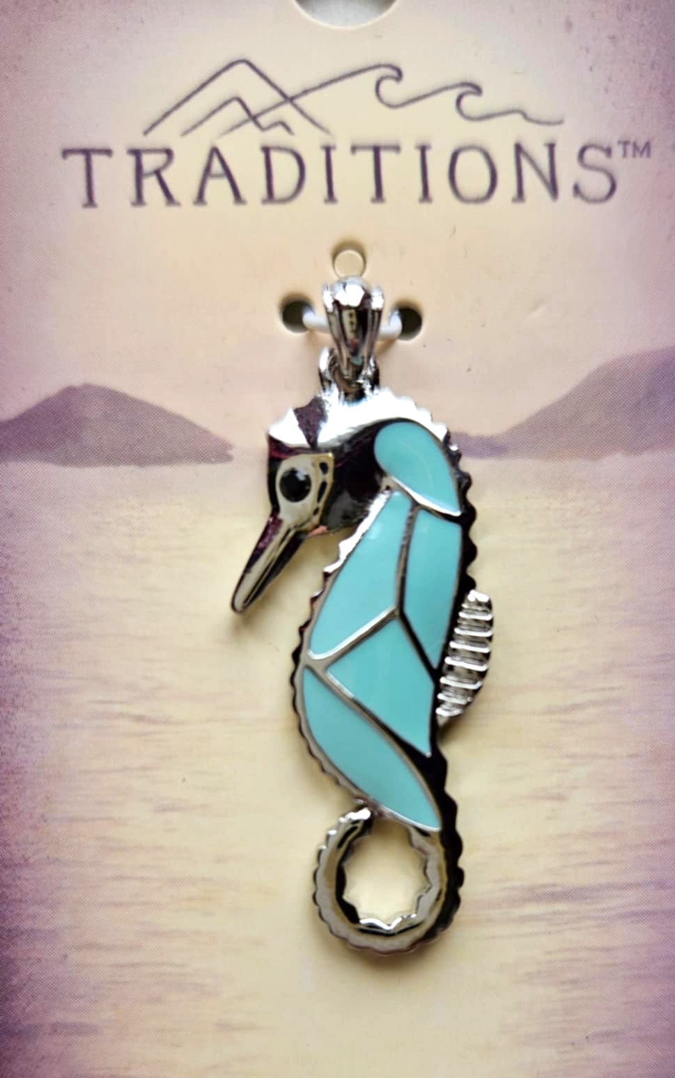maly kovovy privesok 'morsky konik', rozmer: 3.8 x 1.5 cm. 5€