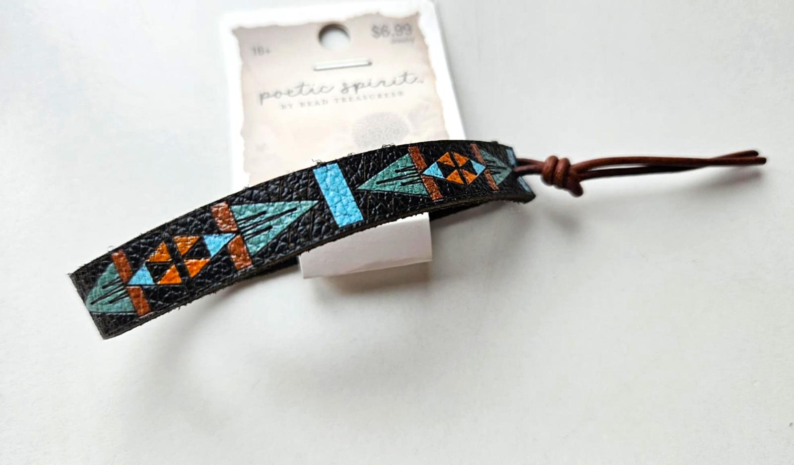kozeny naramok s indianskym motivom, rucne robeny, univerzalna velkost (nastavitelna)