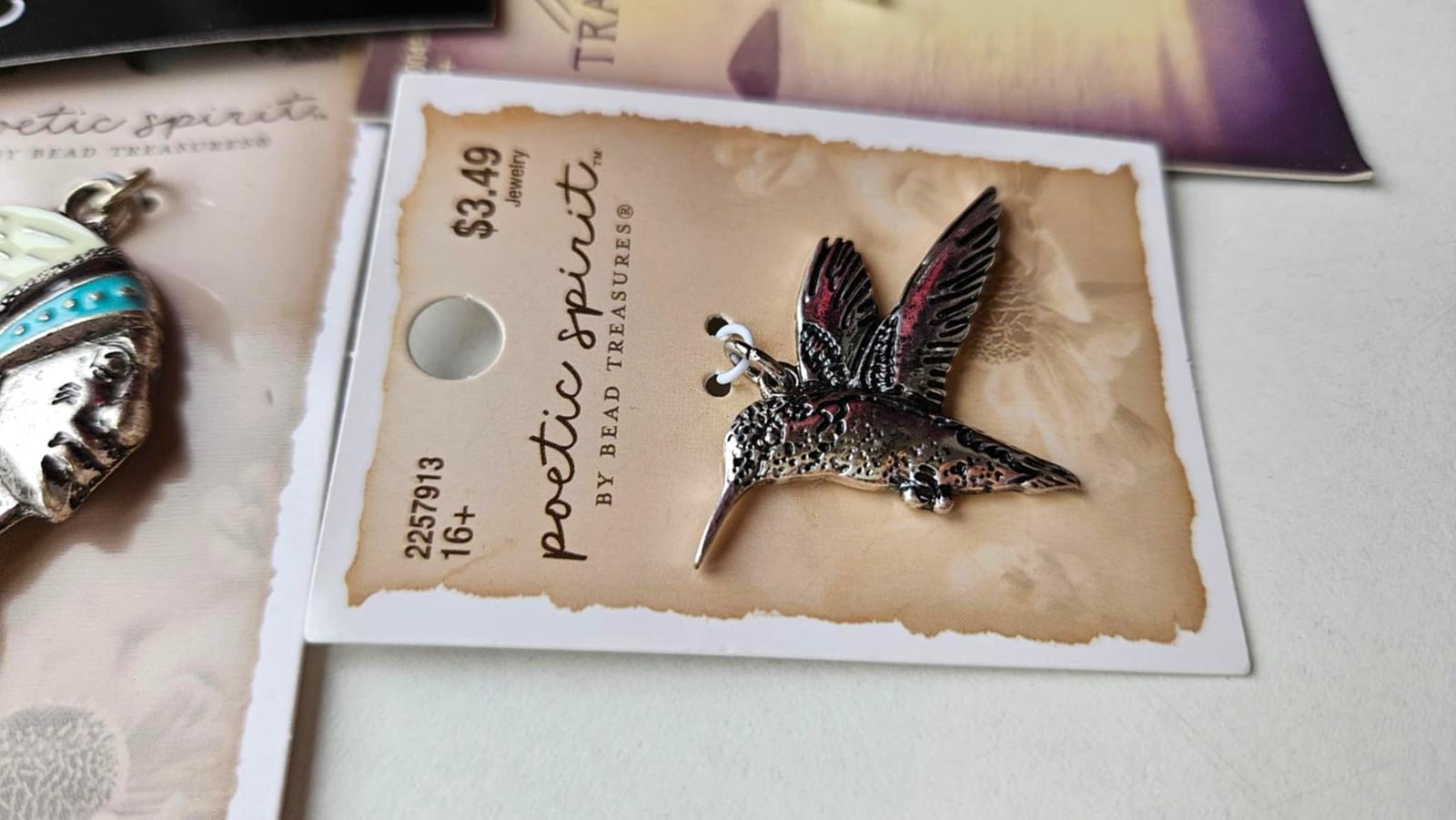 maly kovovy privesok s kolibrikom, rozmer cca 3.5 x 3.5 cm 5€