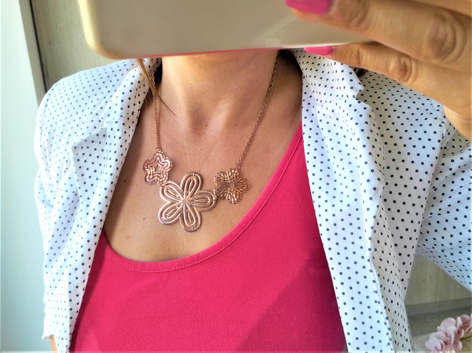 nevymieňam!!!bižutéria,dĺžka 60cm,nastaviteľná veľkosť,časť kde sú kvety má rozmer 12cm,výška 5cm..kuk aj na iné moje inzeráty