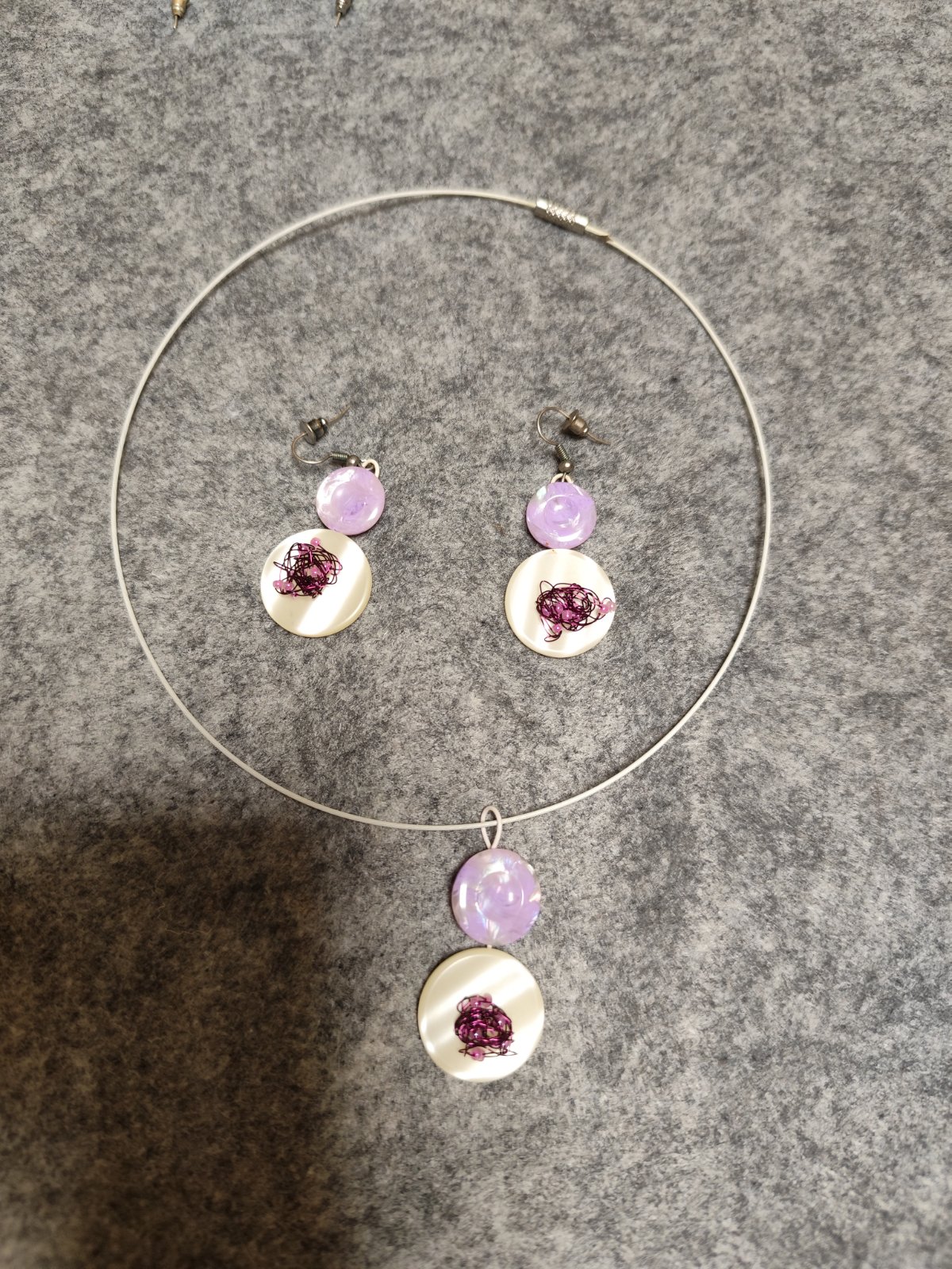 Hand made nahrdelnik s nausnicami hnedo fialove