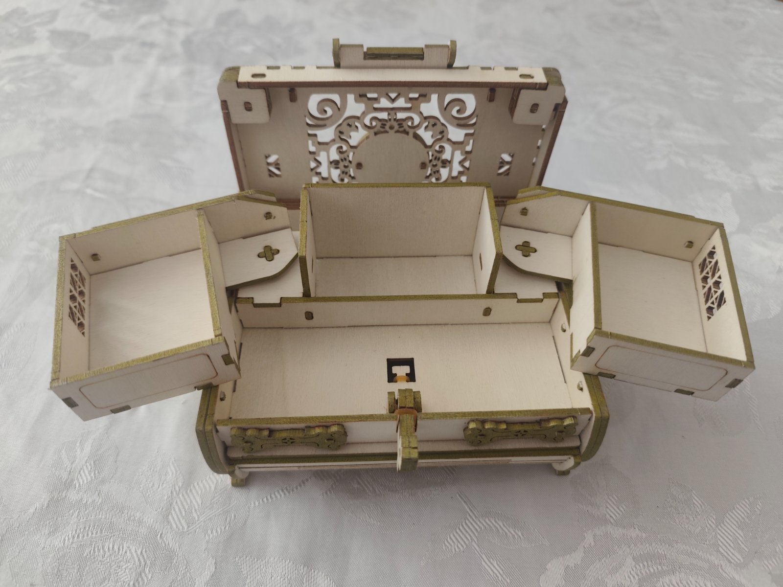 Mnou zložená a namaľovaná šperkovnica z 3D puzzle. Materiál je drevená preglejka.