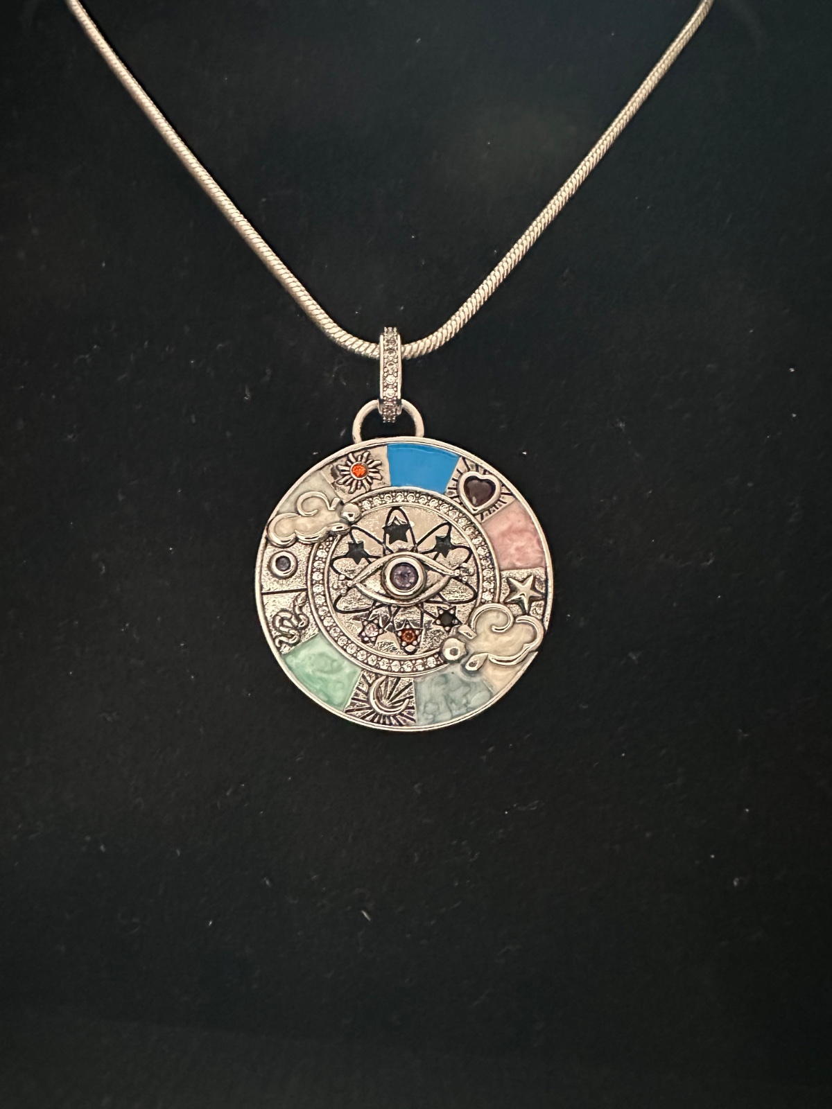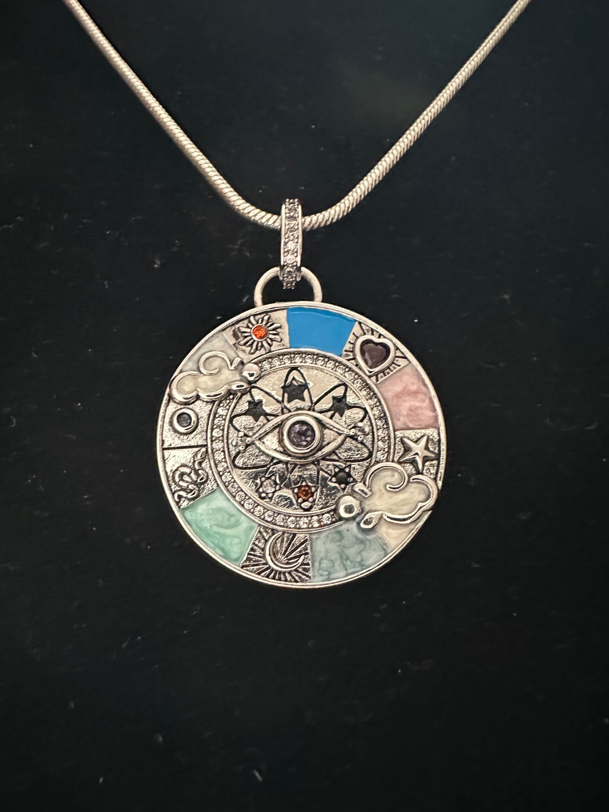 Stredobodom prívesku je symbol oka, ktoré je obklopené ďalšími symbolmi: slnko, srdce, hviezda, polmesiac a had. Na zadnej strane je gravírovanie MAKE A WISH (niečo si želaj).