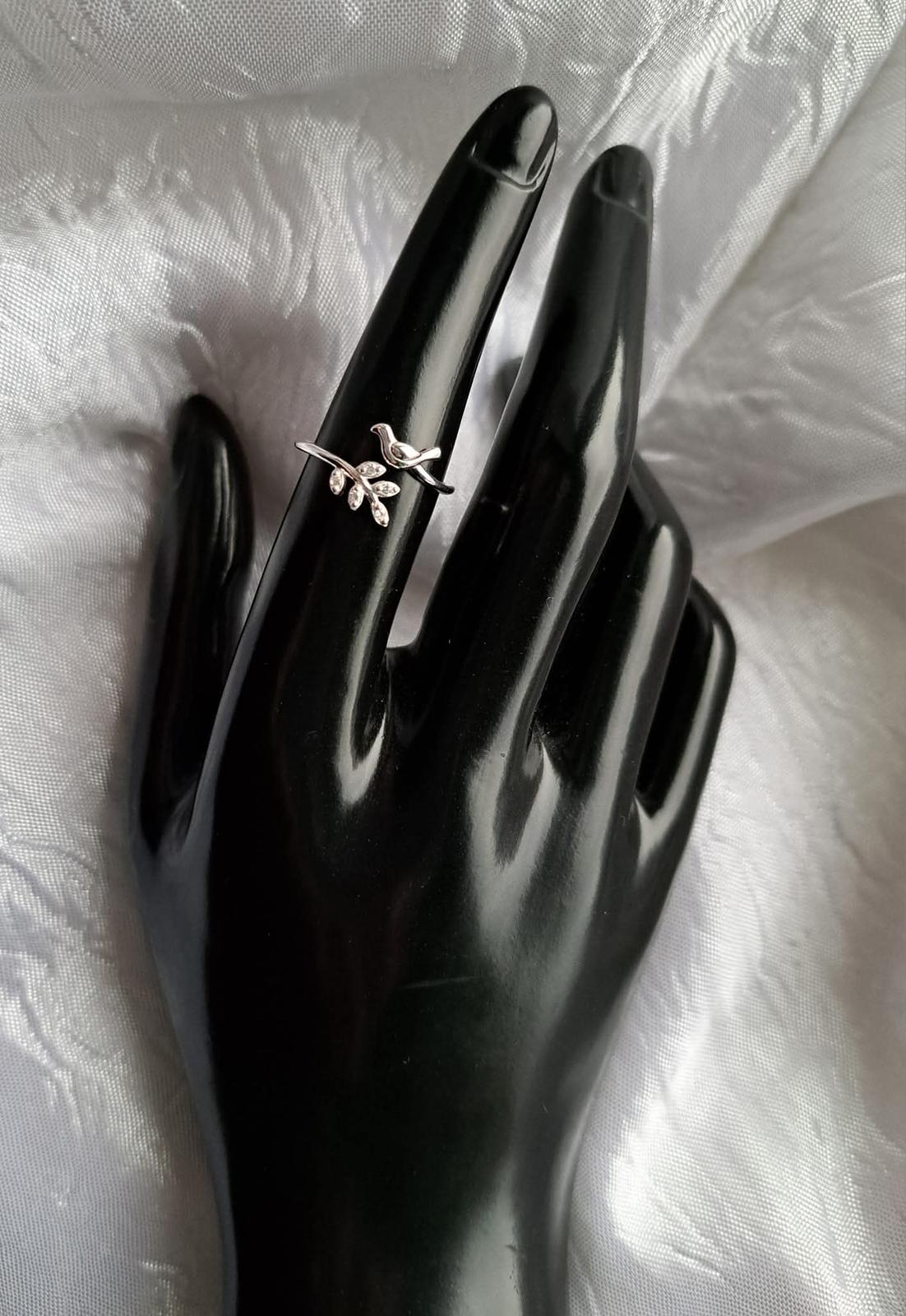 Strieborný prsteň Holubica a olivová ratolesť s bielými zirkónmi 🕊💎🕊