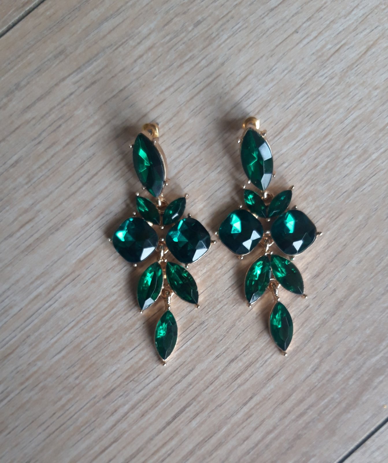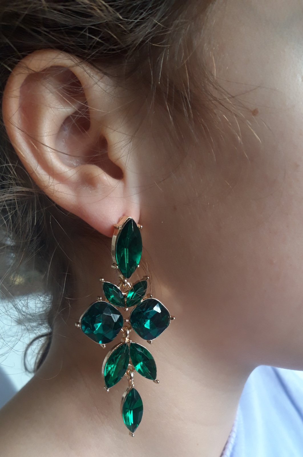 Náušnice vyrobené z plastovej aranžérskej trávy. Kovové komponenty zlatej farby. Háčiky sú zatváracie, takže vám nevylezú z ucha. Dĺžka spolu s háčikom - 14 cm.