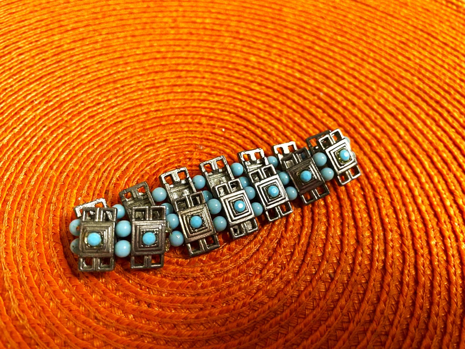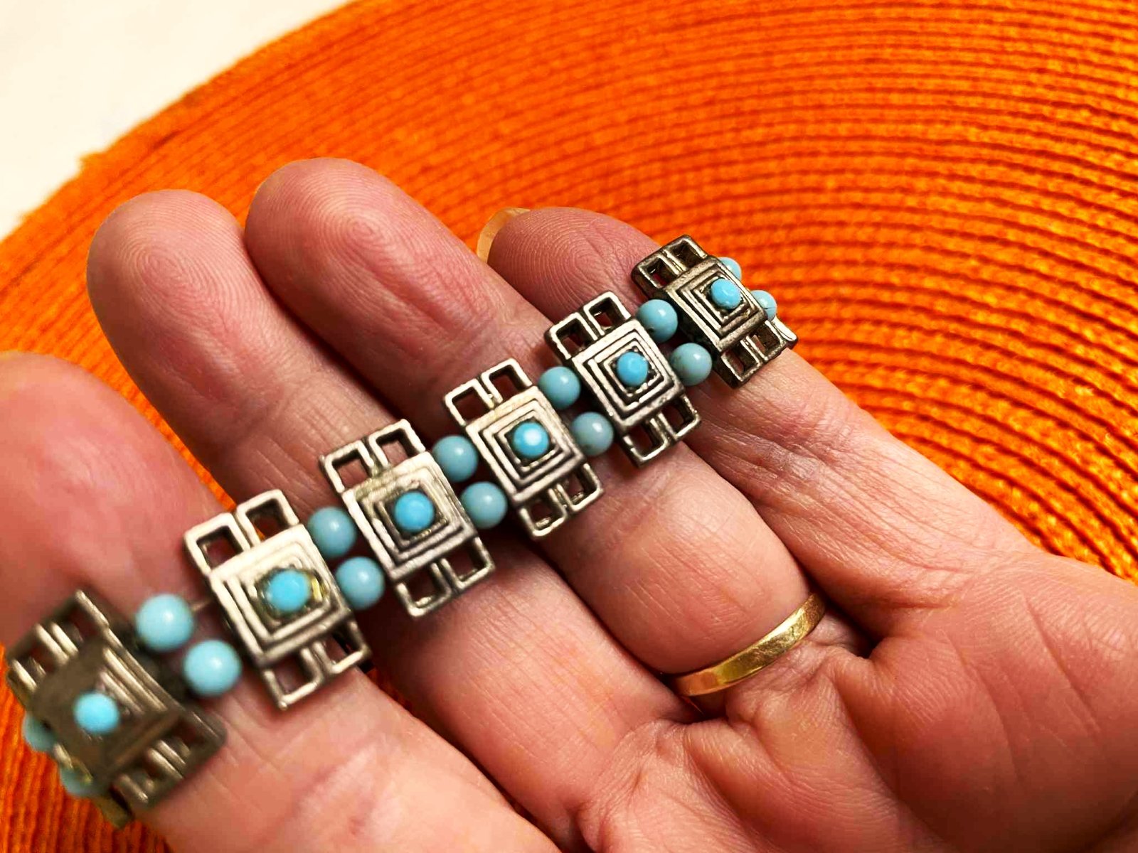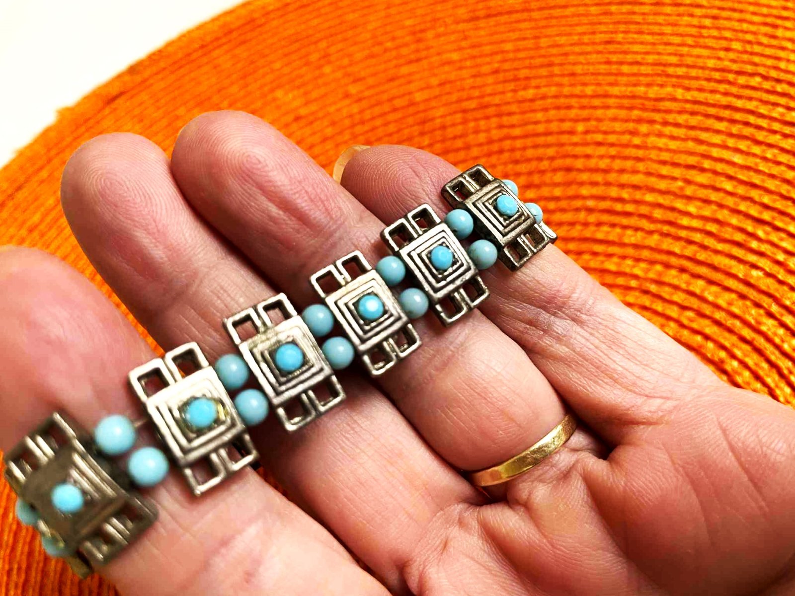 náramok z mexického striebra, obdlžnik o veľkosti 1,5 x 0,5 cm,obvod 16 cm - v kľude,poddá sa,je na gumičky