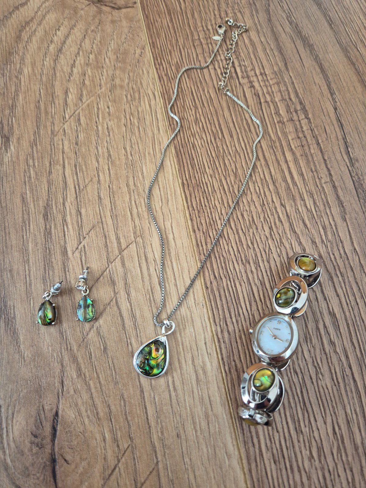 Kolekcia hodiniek, náušníc a retiazky.