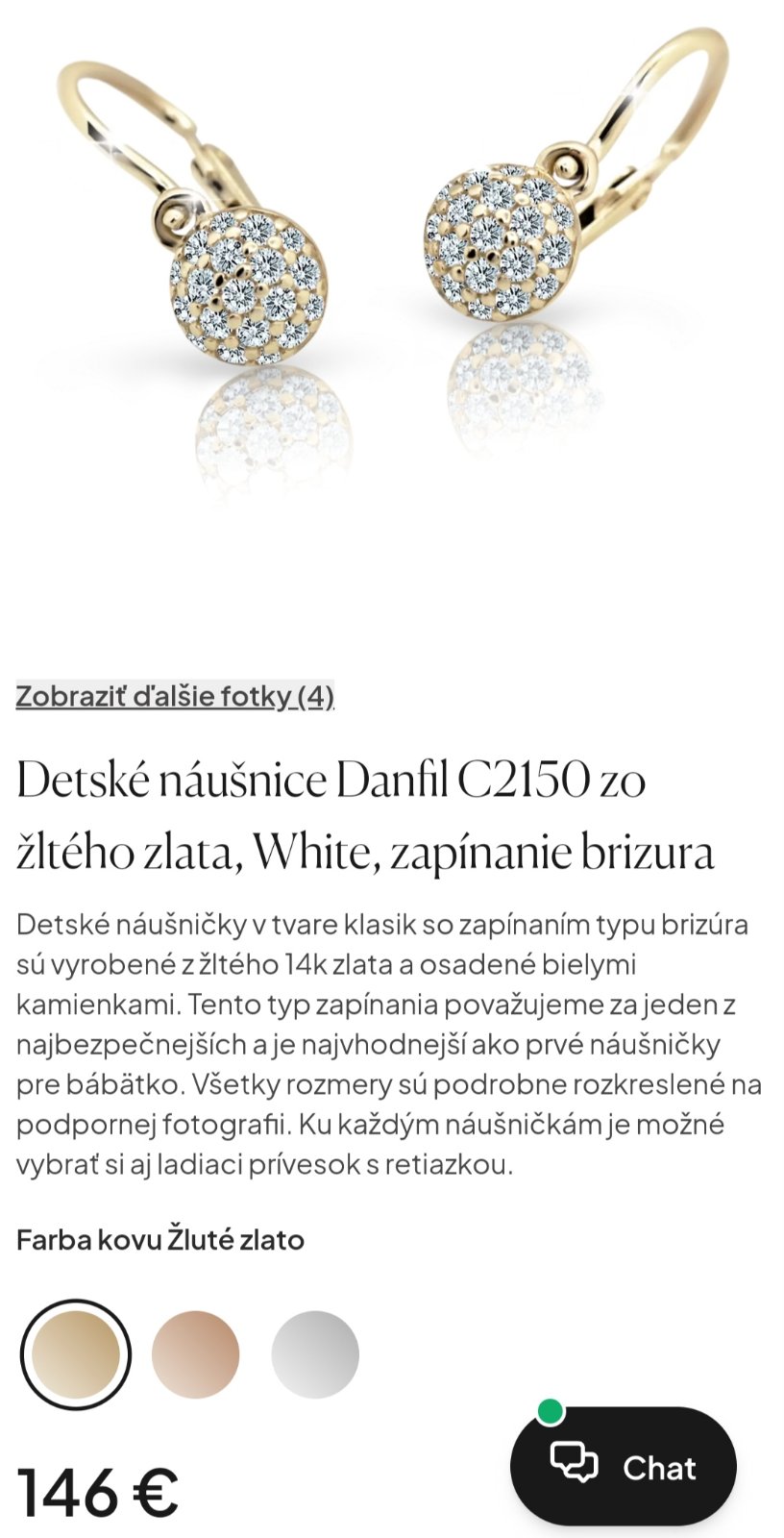 Zlate 14 karatove nausnicky mesiac nosene, nakoniec sme dostali dalsie nausnicky, tak sme vymenili. Zlte zlato. Nausnicky su vhodne uz aj pre babatka. Rozmery su na prilozenej fotke v inzerate. Treba ich vycistit,scervenalo zlato v miestach kde viseli nausnicky na uskach. Inak su ako nove. Povodna cena 146€.
