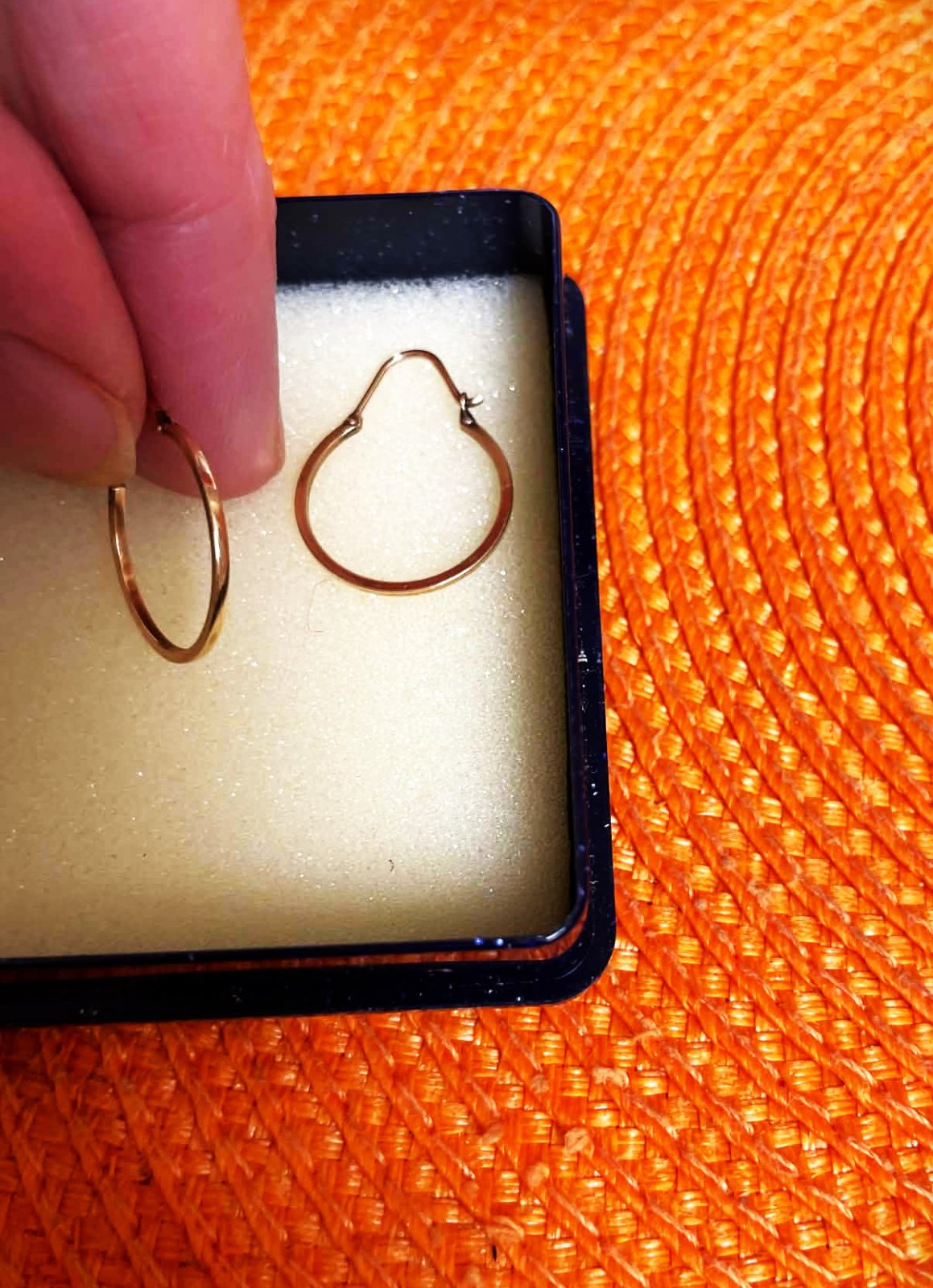 jemné krúžky zo 14 karátového zlata, majú lesklý okrúhly tvar. Priemer náušníc je 18 mm a šírka je 1,5 mm. Bezpečnosť zaručuje pevné zapínanie na háčik,vážia 1,32 gramov,pre porovnanie pozri podobné :