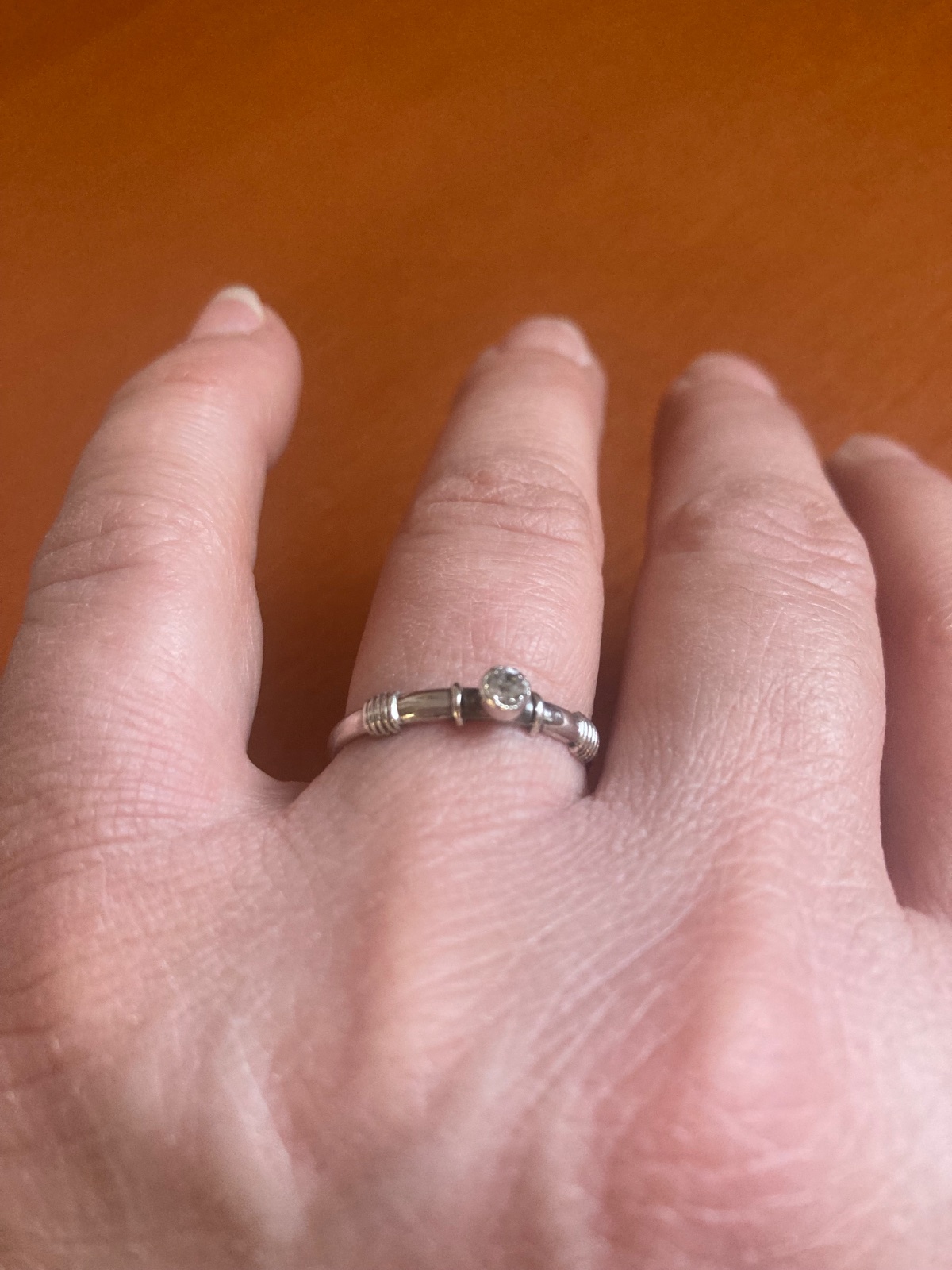 Predám strieborný prsteň so zirkónom, veľ.6,5, pri kúpe viacerých vecičiek ponúkam zľavu :)