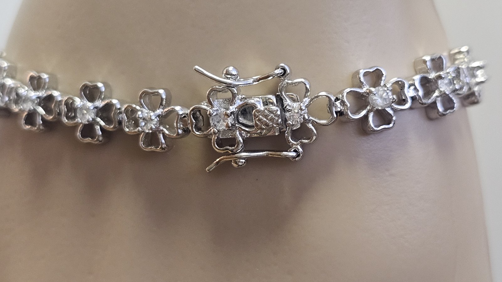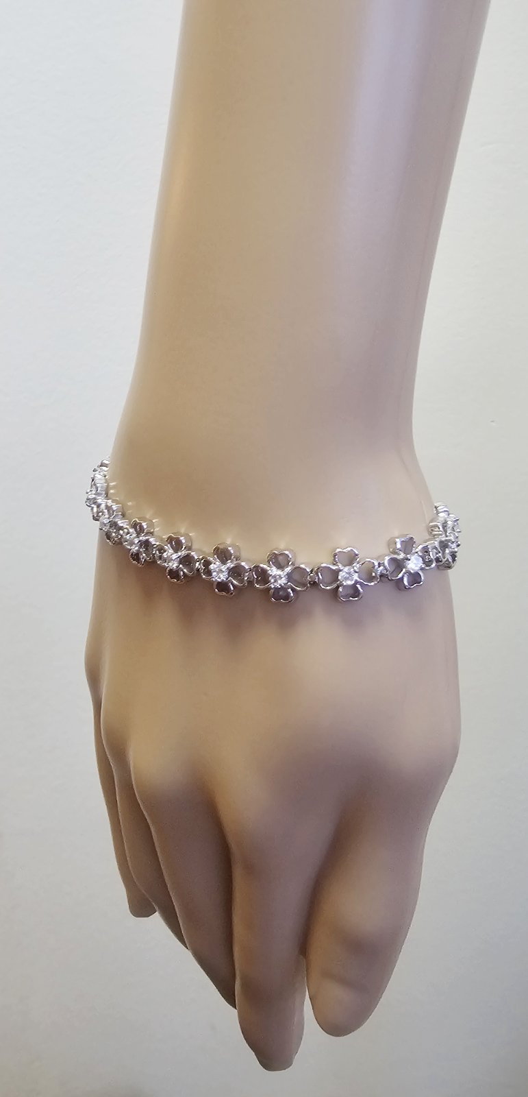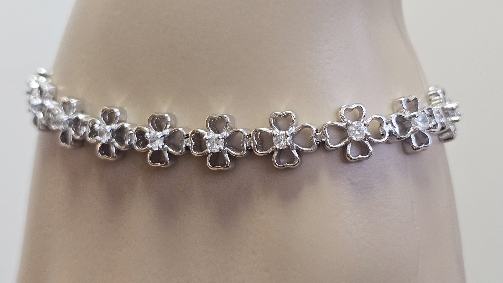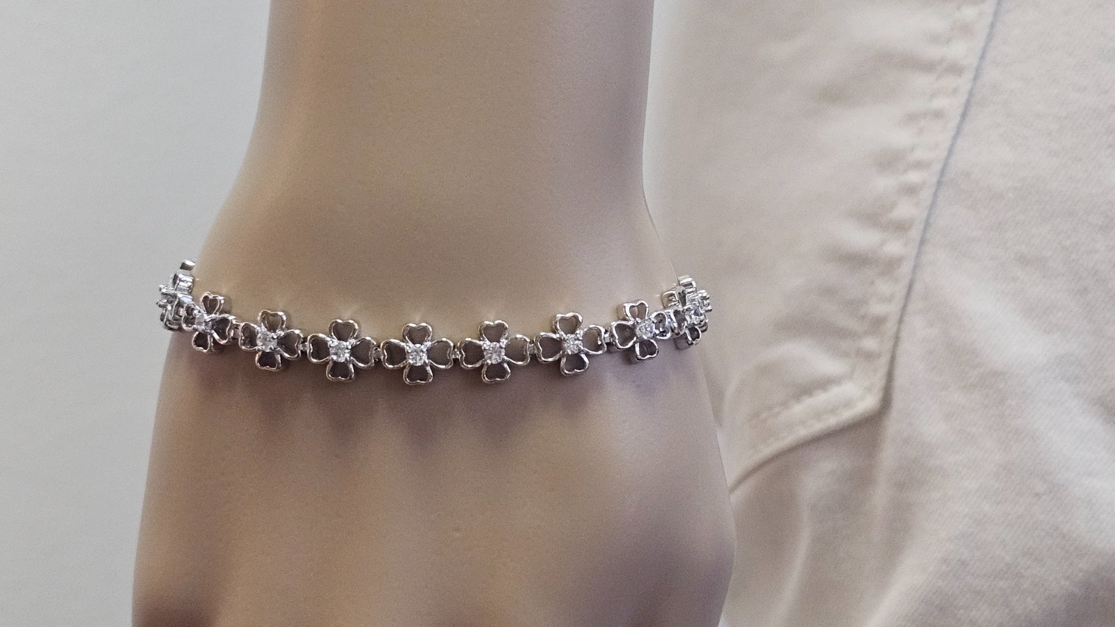 Nové, náramok je pokovaný rhodiom a vsádzaný s CZ kryštálmi . Rozmer 19x 1,3 cm.