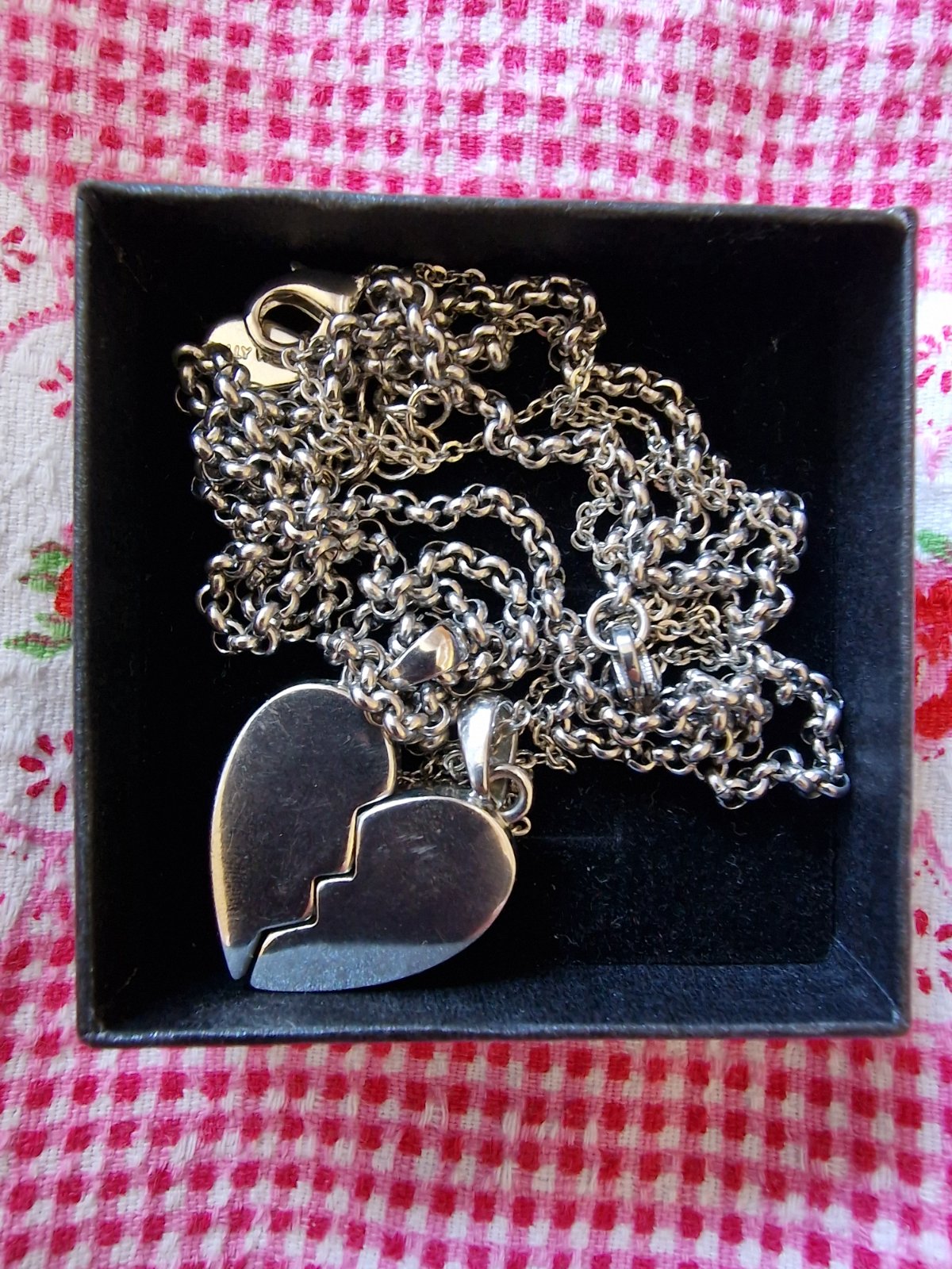 Nenosené. 2 retiazky dámska/pánska a srdiecko spojene magnetom