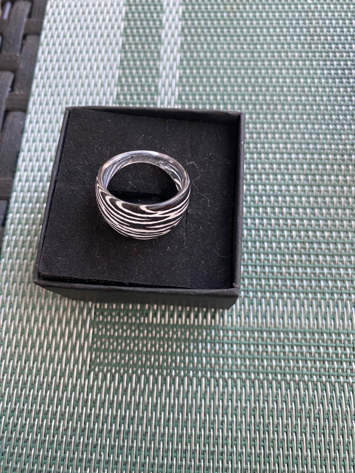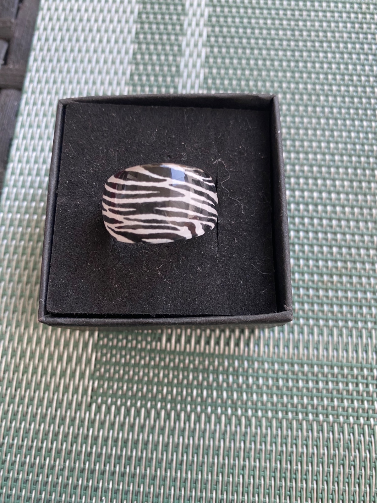 Prstienok je z umelej hmoty príjemný na nosenie. Vnútorná šírka 18,1 – Č. 57.Zakúpený v rakúskej Zare.